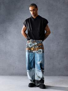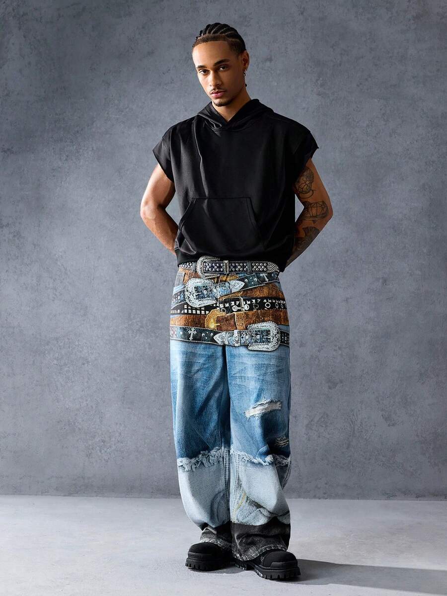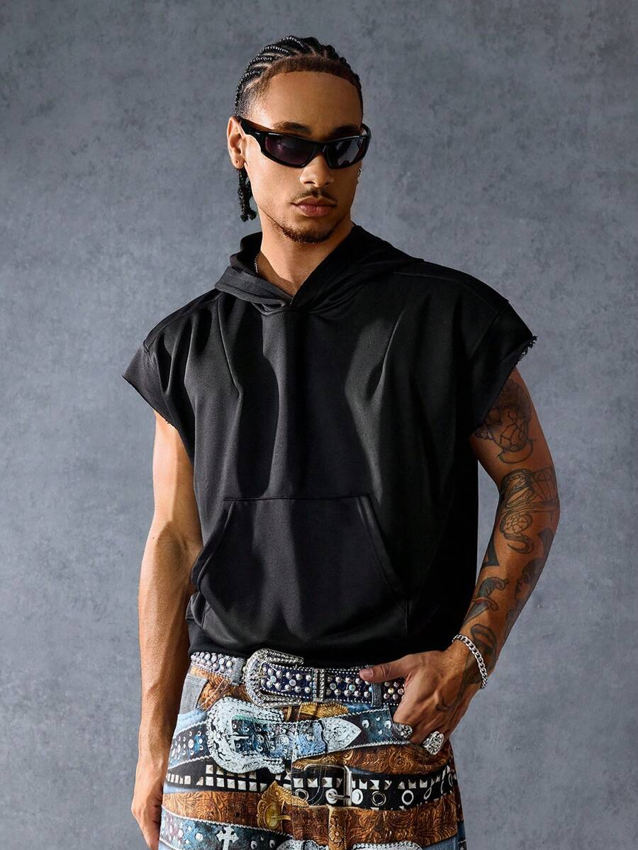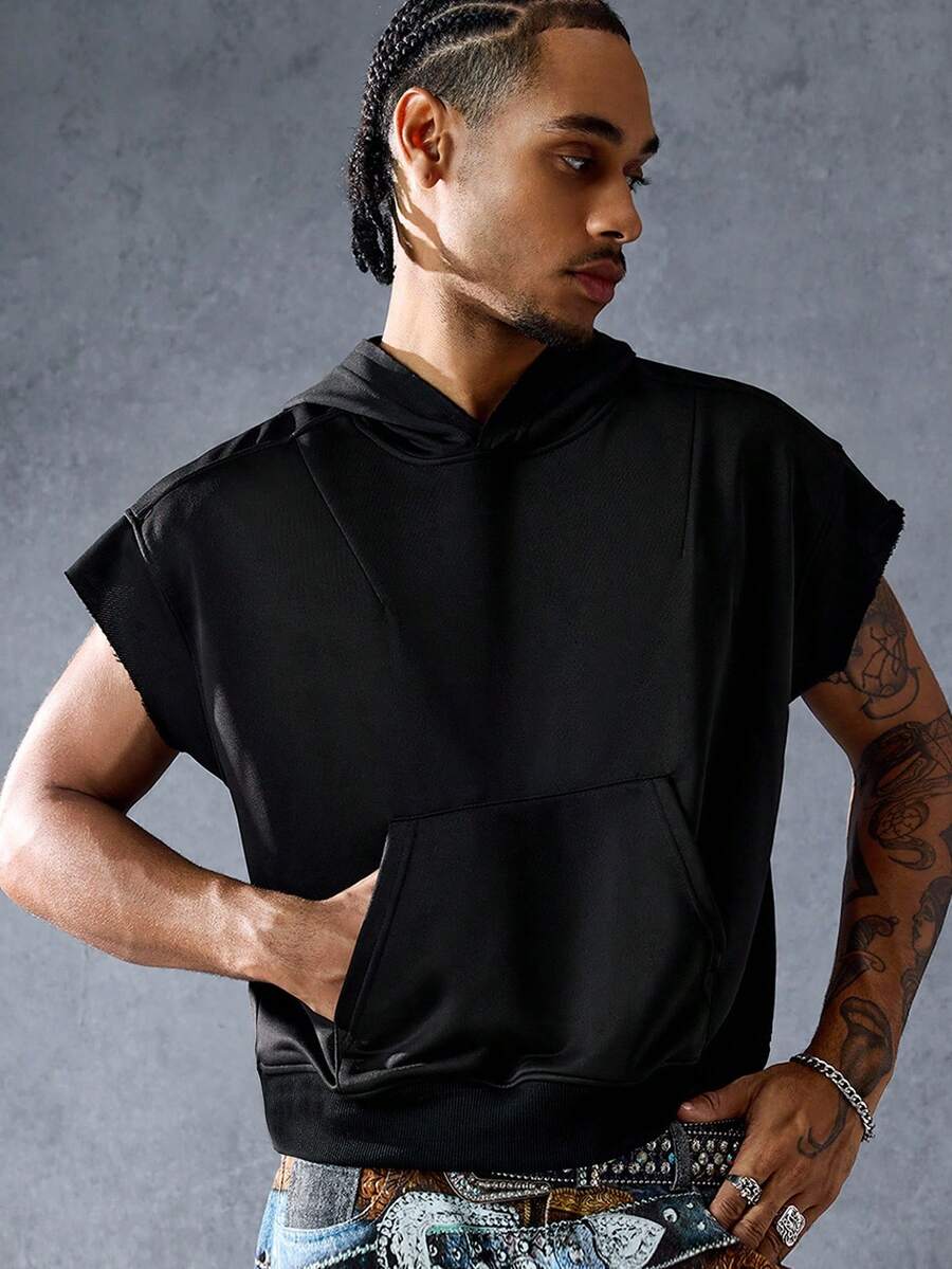 Street Life Sudadera con capucha casual y holgada de unicolor para hombre