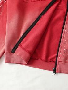 Street Life Sudadera holgada de estilo corto con bordado de diamantes brillantes lavada para hombres