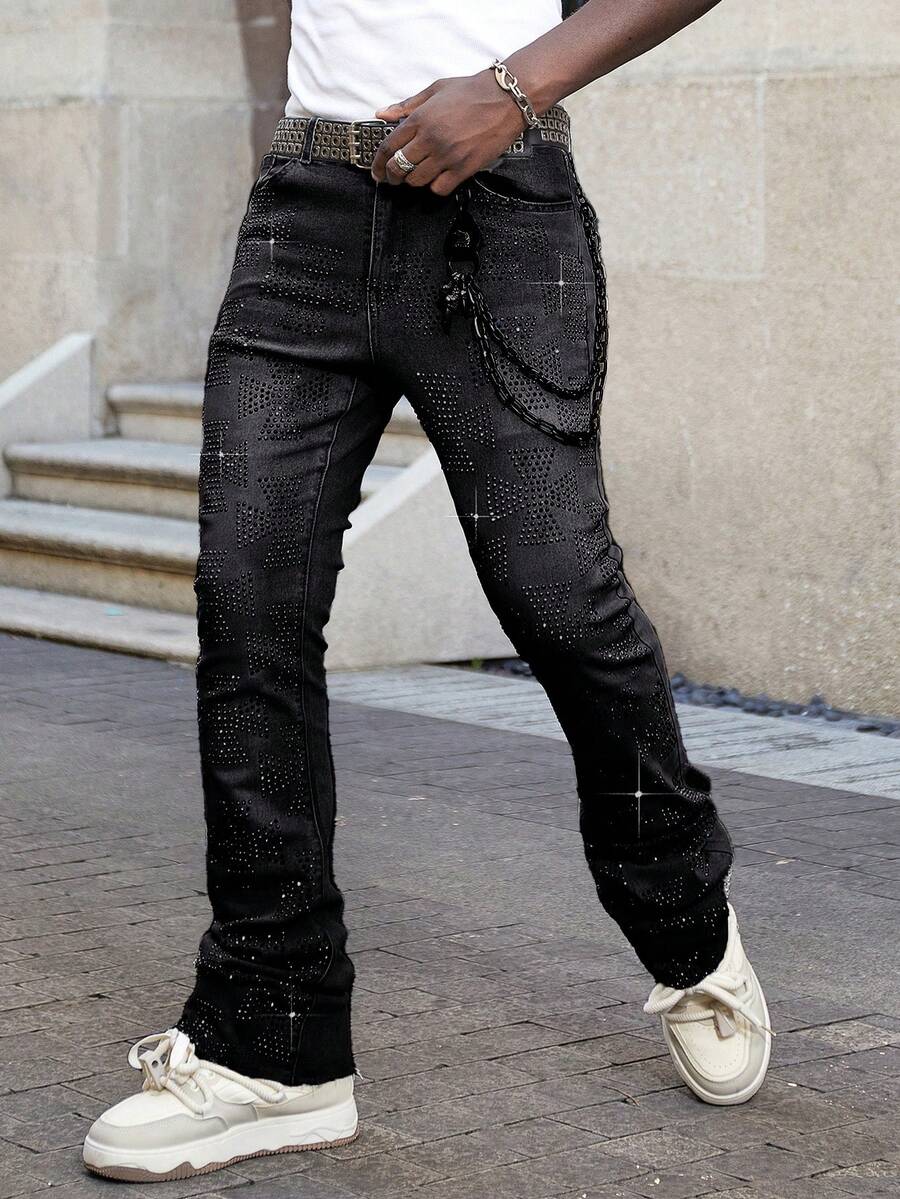 Street Life Jeans casuales y versátiles con bolsillo con diamantes brillantes para hombres