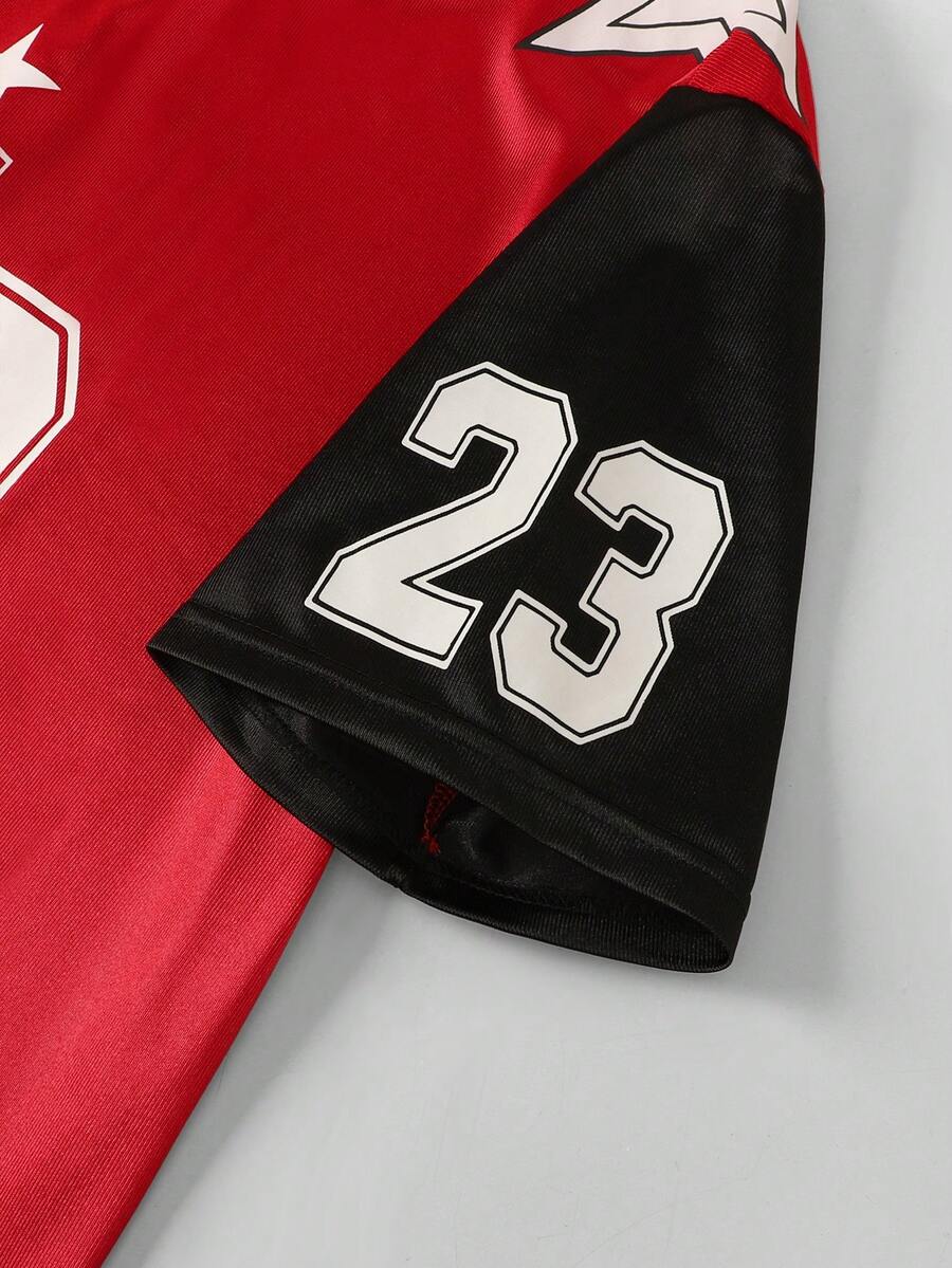 Street Life Camiseta de jersey deportiva de color contrastante para hombre, tela cómoda y brillante, mangas con bloques de color, cuello acanalado, escuela