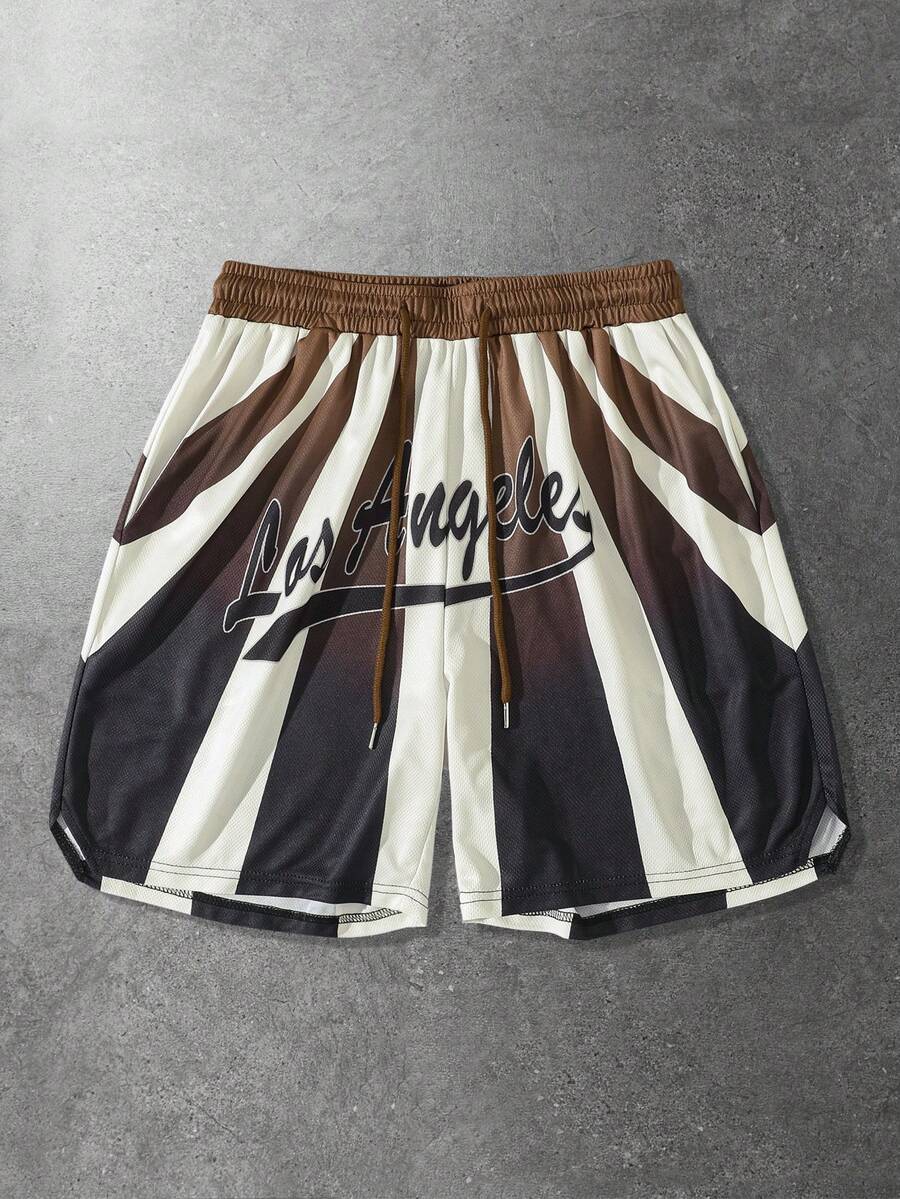Street Life Pantalones cortos casuales de hombre para primavera/verano con malla, estampado de letras y cordón en la cintura