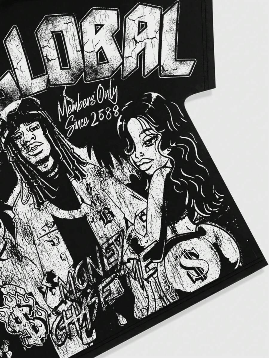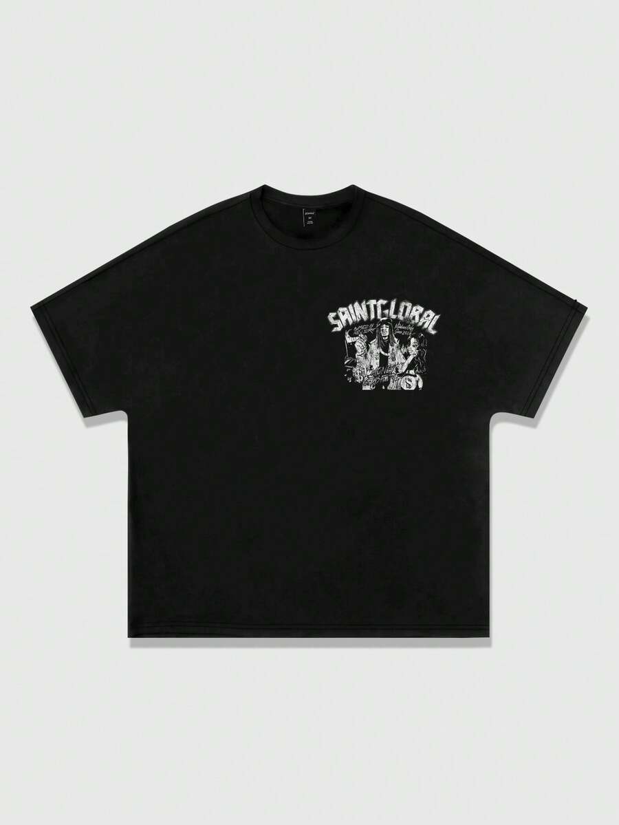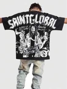 Street Life Camiseta casual de manga corta con estampado y mangas de murciélago para hombre