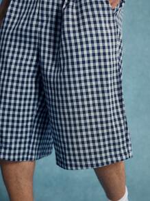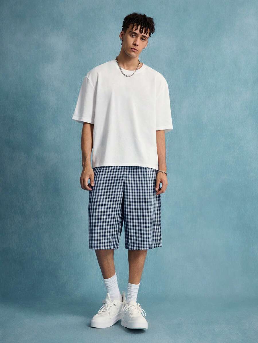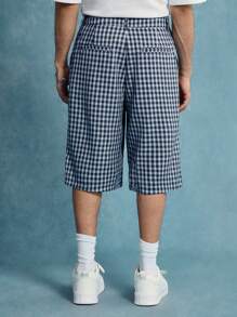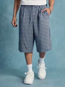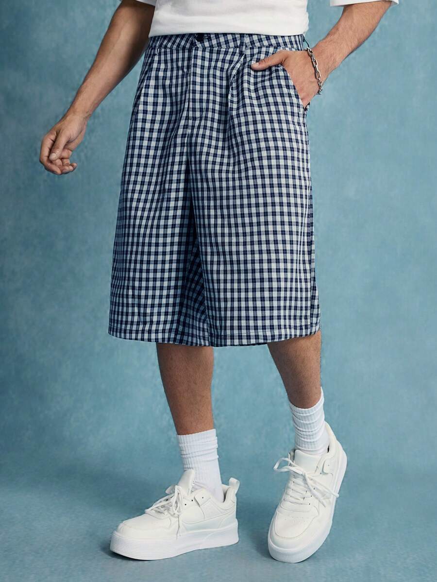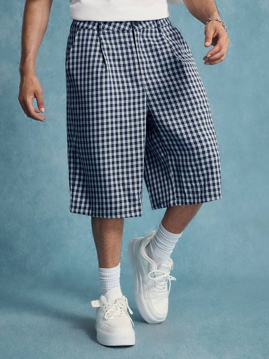 Street Life Pantalones cortos casuales de bolsillo a cuadros con corte holgado para hombre
