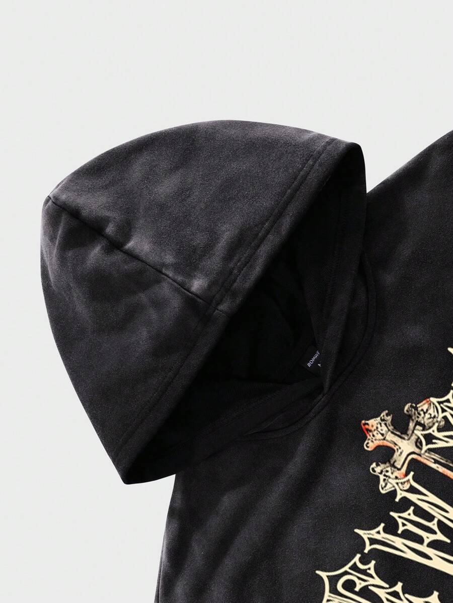 Street Life Sudadera con capucha para hombres con estampado callejero de salpicadura de pintura, cruz y letra