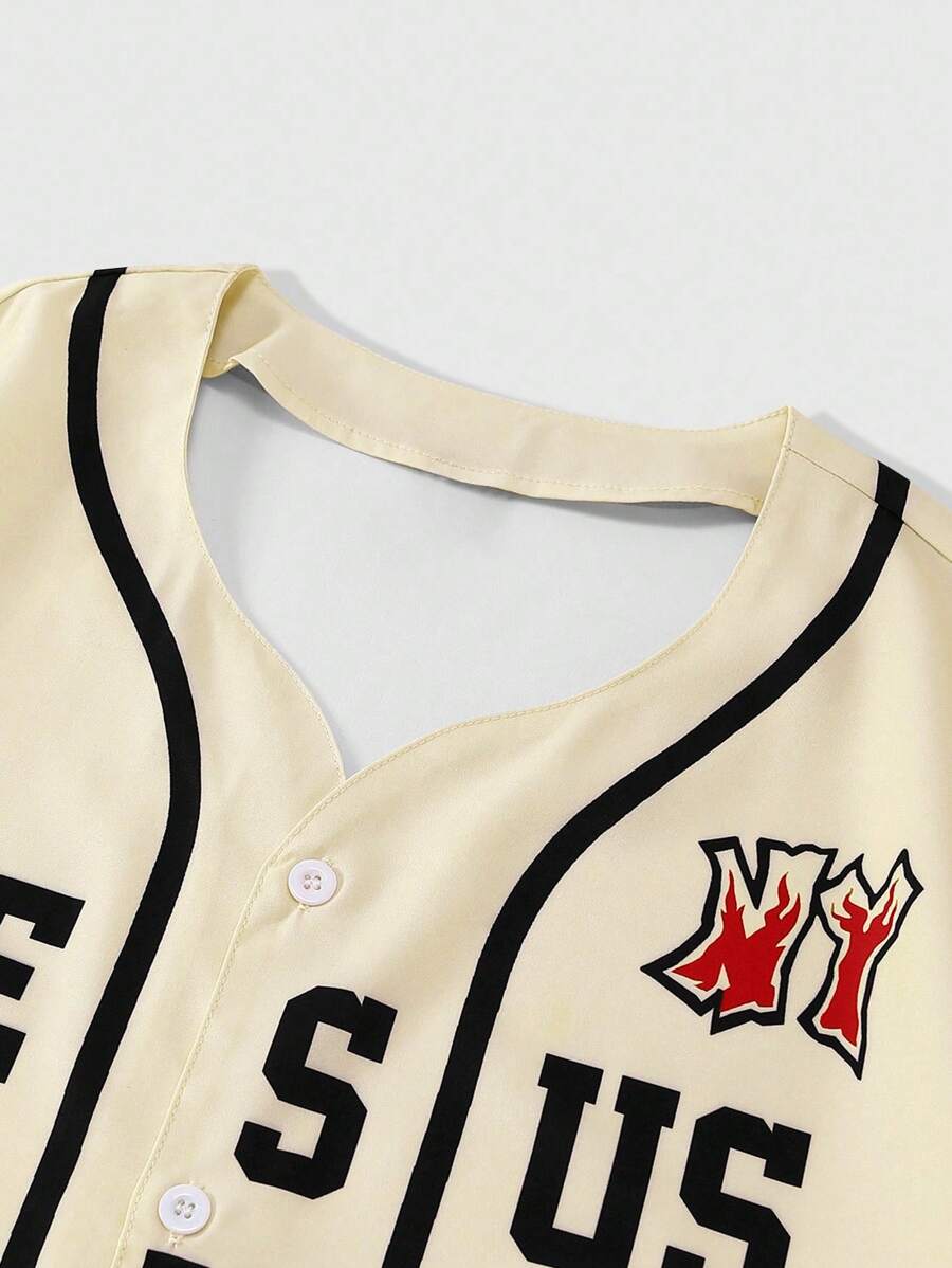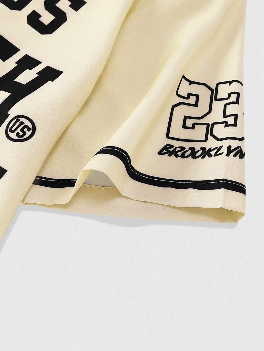 Prep Conjunto de camiseta de cuello en V con impresión de letras y calado de contraste, y pantalones cortos de baloncesto casuales y deportivos de verano para hombre
