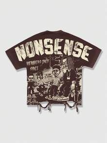 Street Life Camiseta gráfica de manga de murciélago de estilo callejero para hombres, adecuada para uso diario, primavera/verano