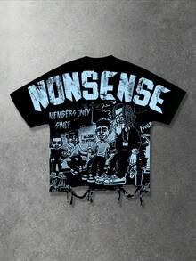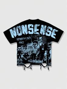 Street Life Camiseta gráfica de manga de murciélago de estilo callejero para hombres, adecuada para el uso diario en primavera/verano