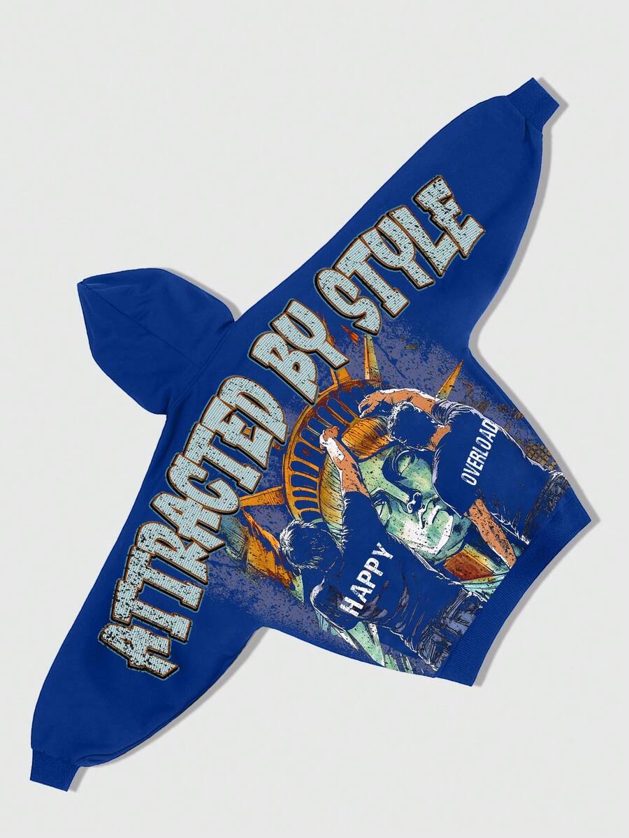 Street Life Sudadera con capucha casual estampada con cordón para hombre