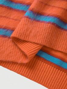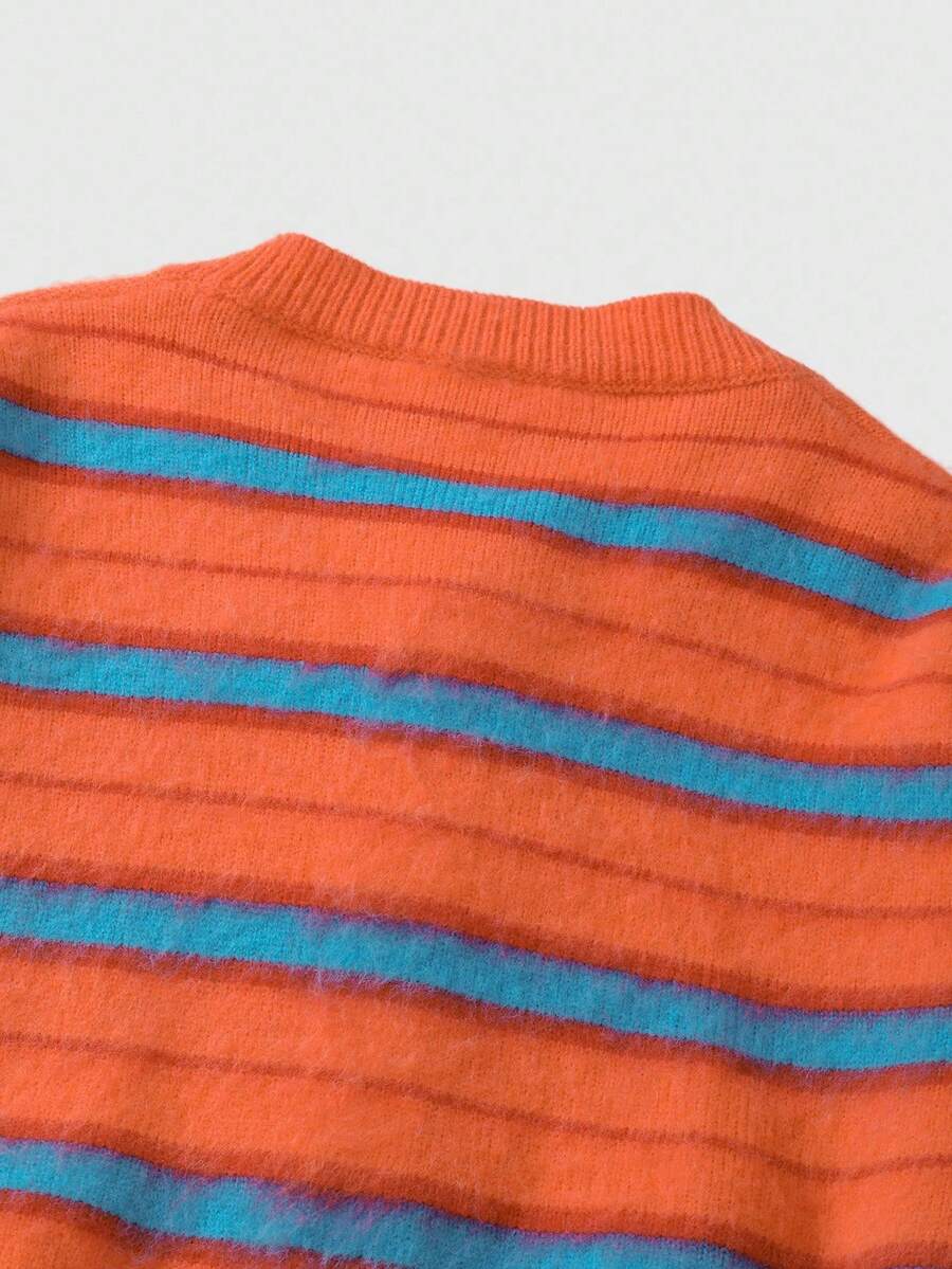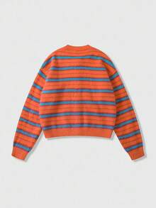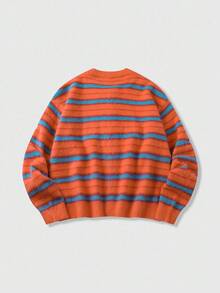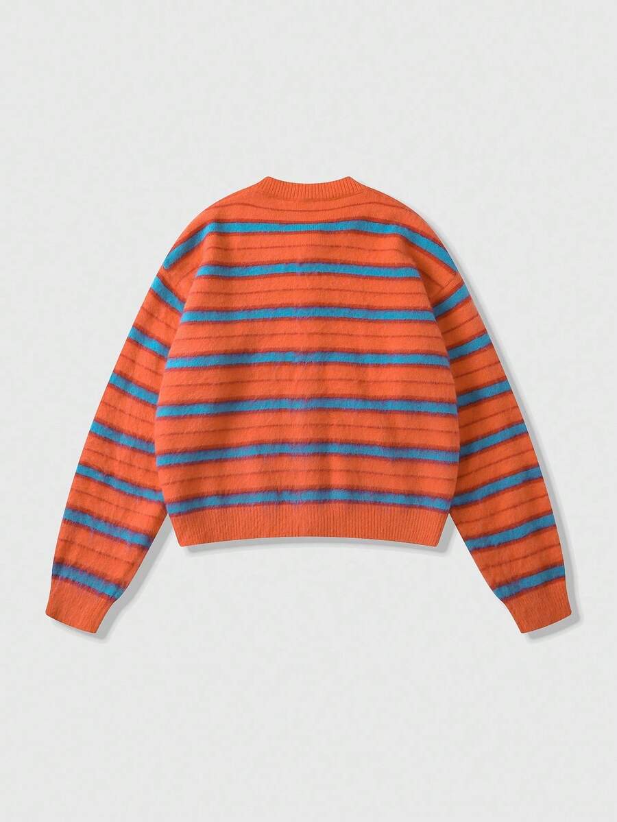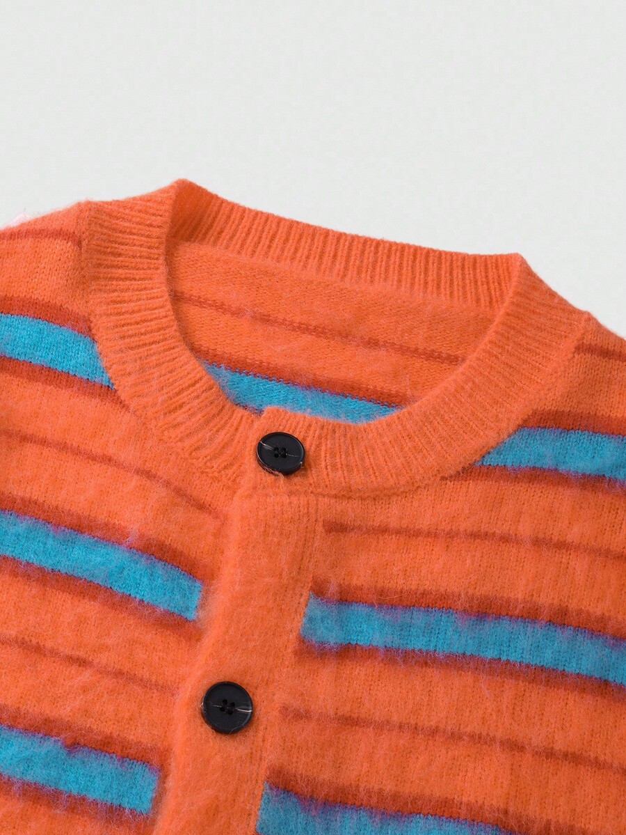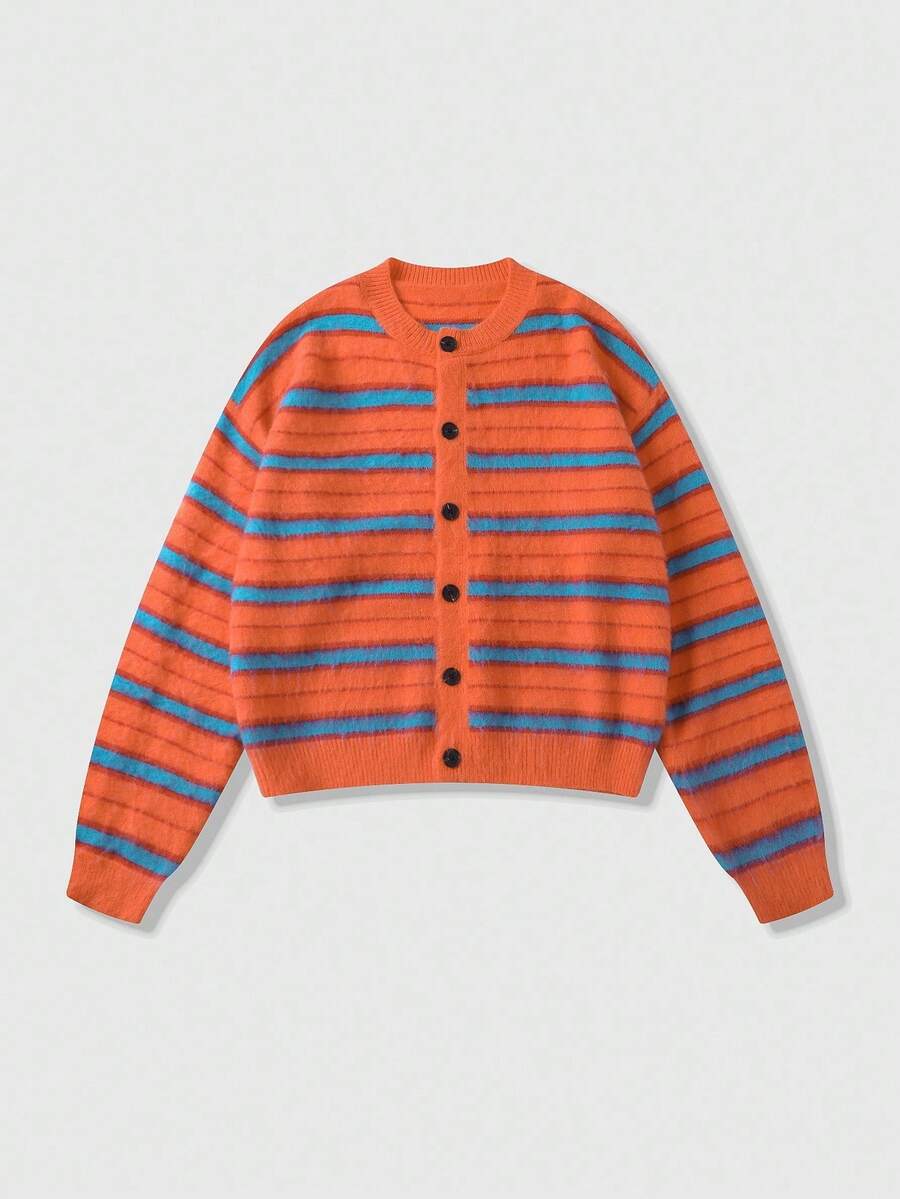 Street Life Cardigan de botones a rayas para hombre, corte holgado y corto, otoño e invierno
