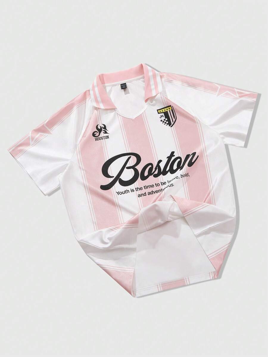 Prep Camisa polo deportiva a rayas para hombres, adecuada para uso casual en primavera y verano