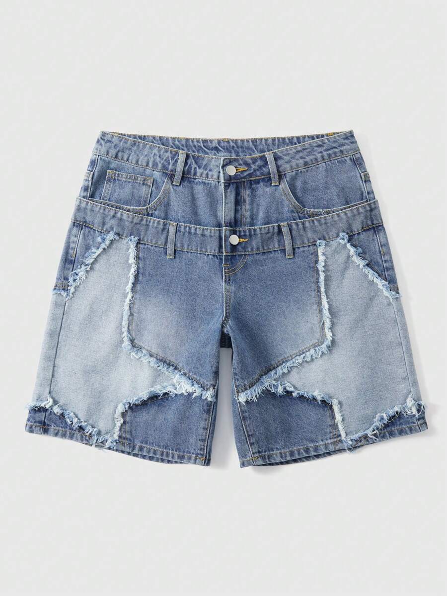Street Life Pantalones cortos vaqueros de verano para hombre con parches de estrellas desgastados y doble cintura, para uso casual, vacaciones, moda callejera y viajes diarios
