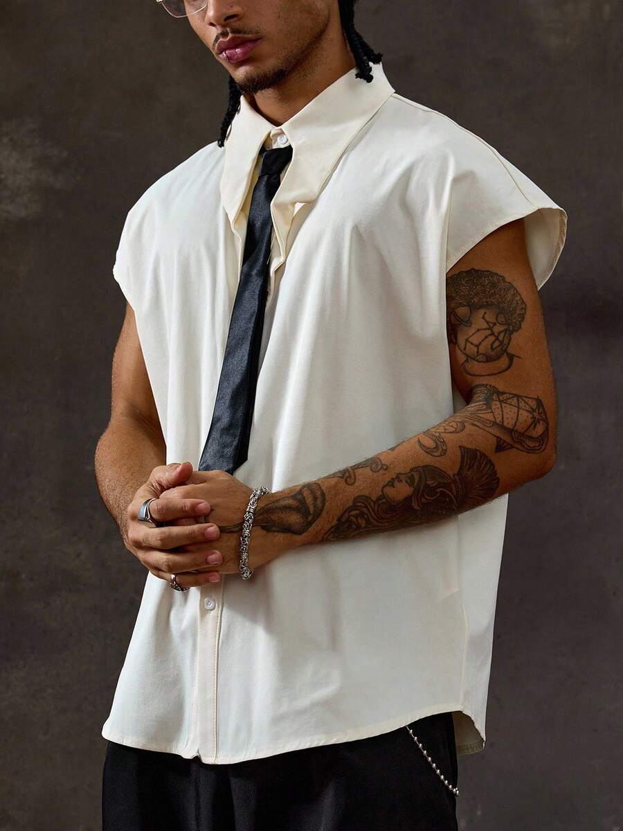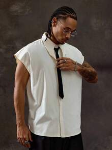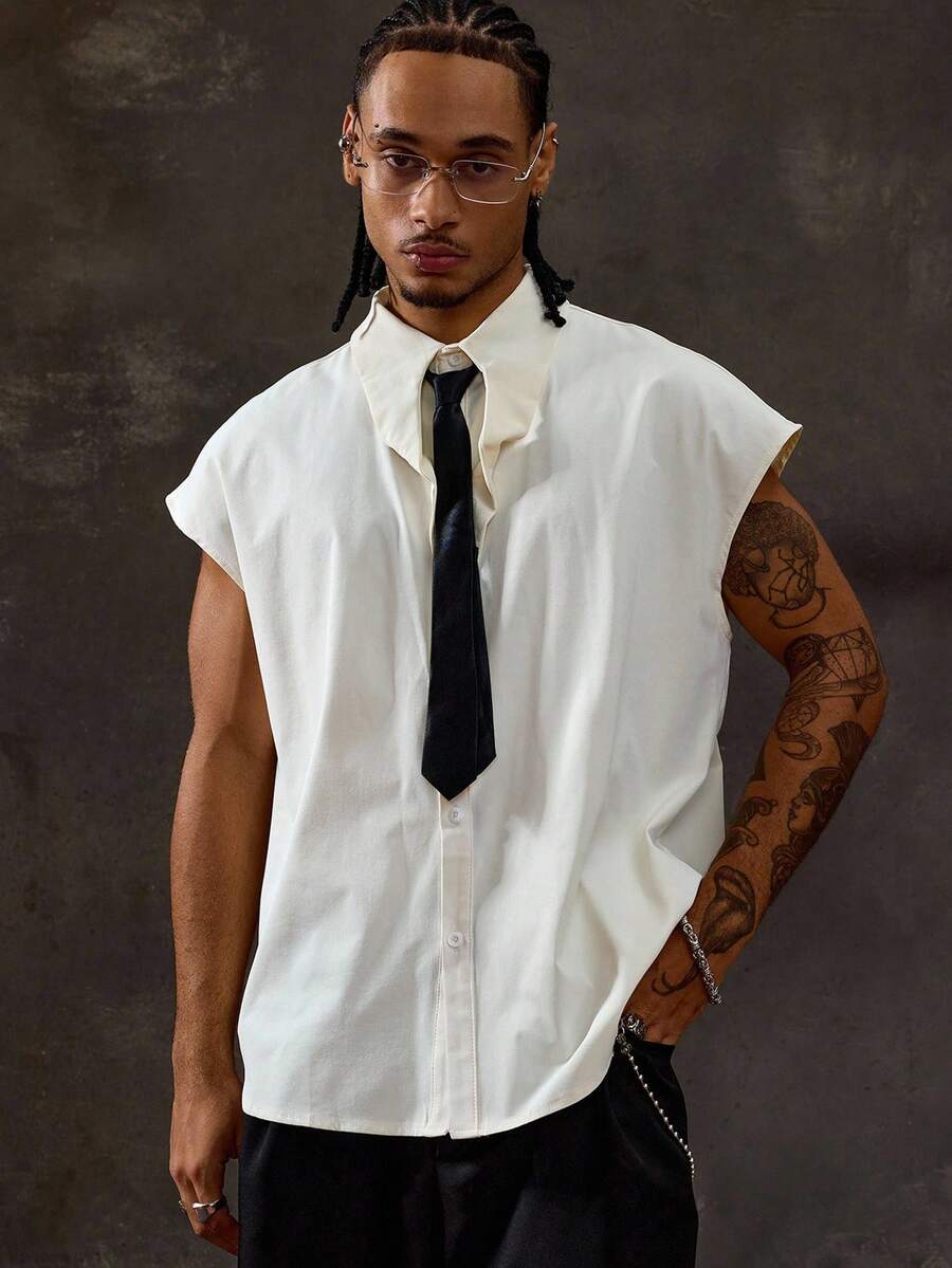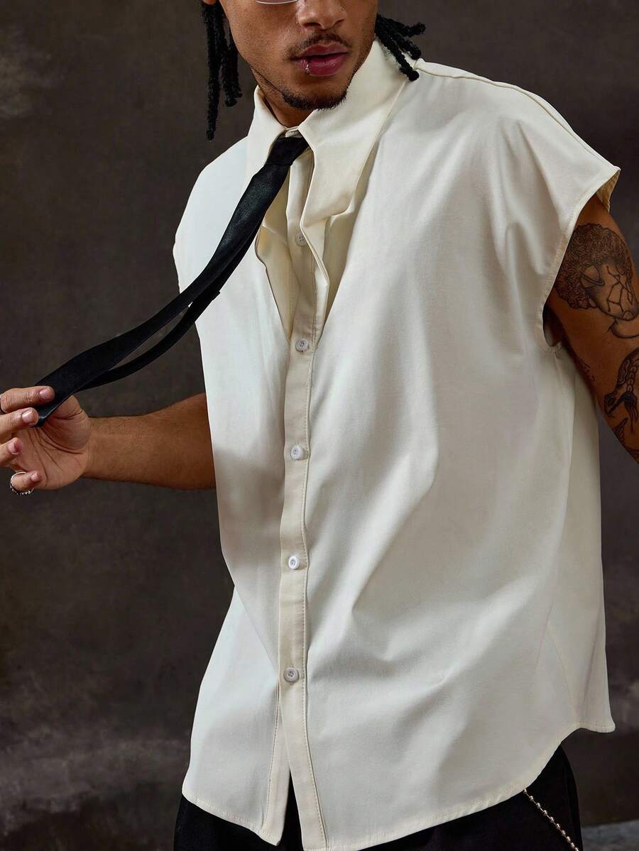 Prep Camisa de moda de verano para hombres con cuello de color contrastante y hombros anchos