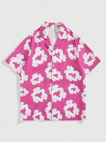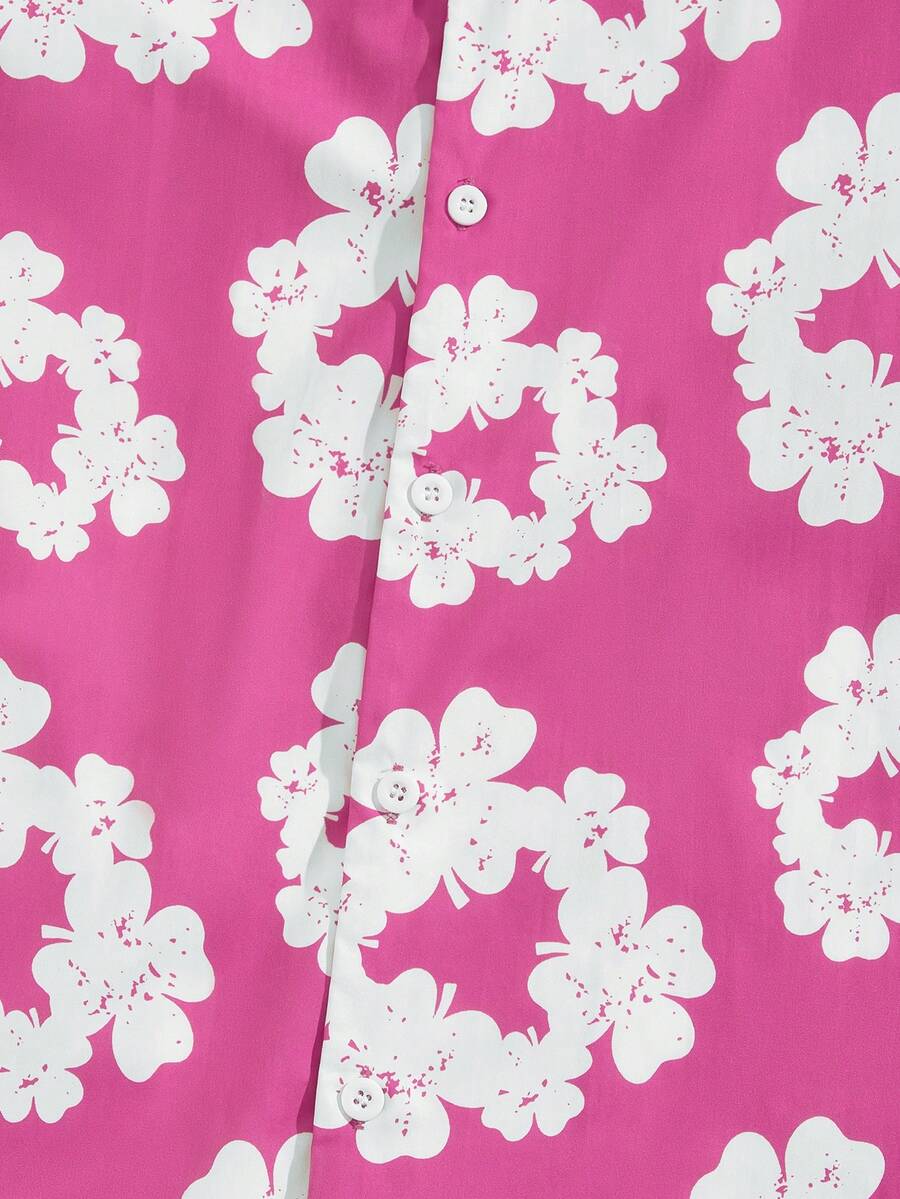 Street Life Camisa casual de manga corta para hombre con estampado floral de verano