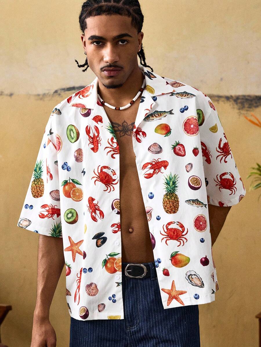 Street Life Camisa de manga corta con botones y estampado digital para vacaciones de verano para hombres