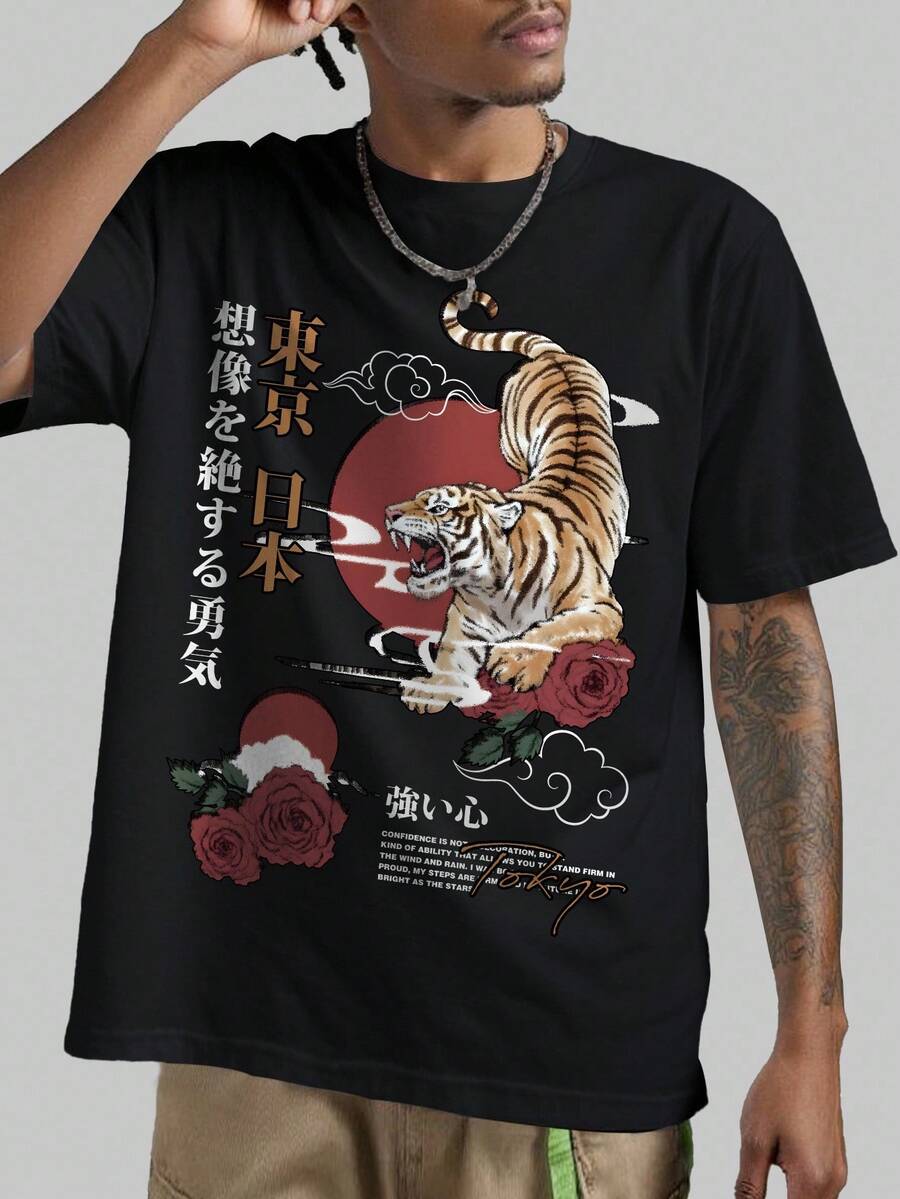 Anime Camiseta deportiva casual cómoda con estampado de tigre para hombre