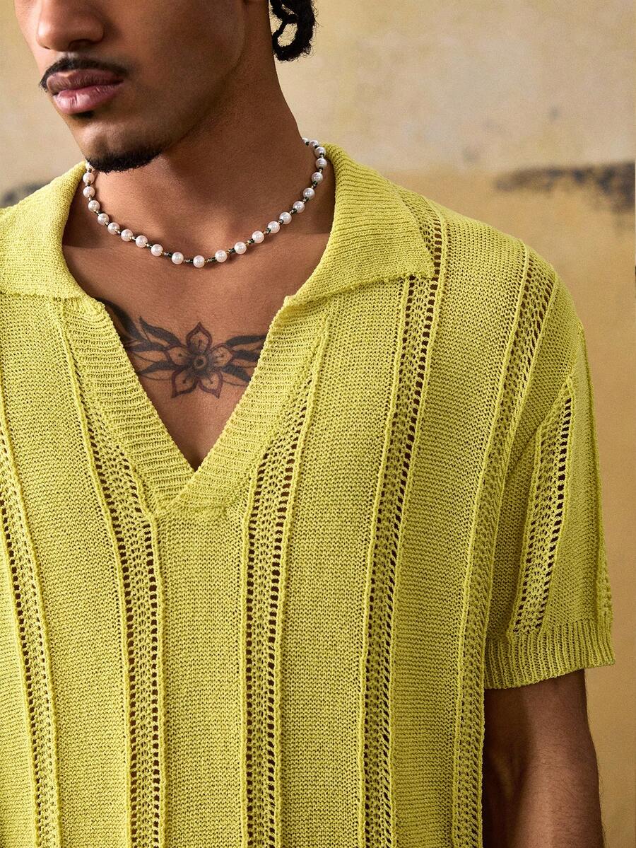 Street Life Top informal de punto jacquard holgado de manga corta con cuello vuelto para hombre