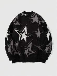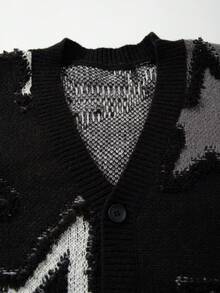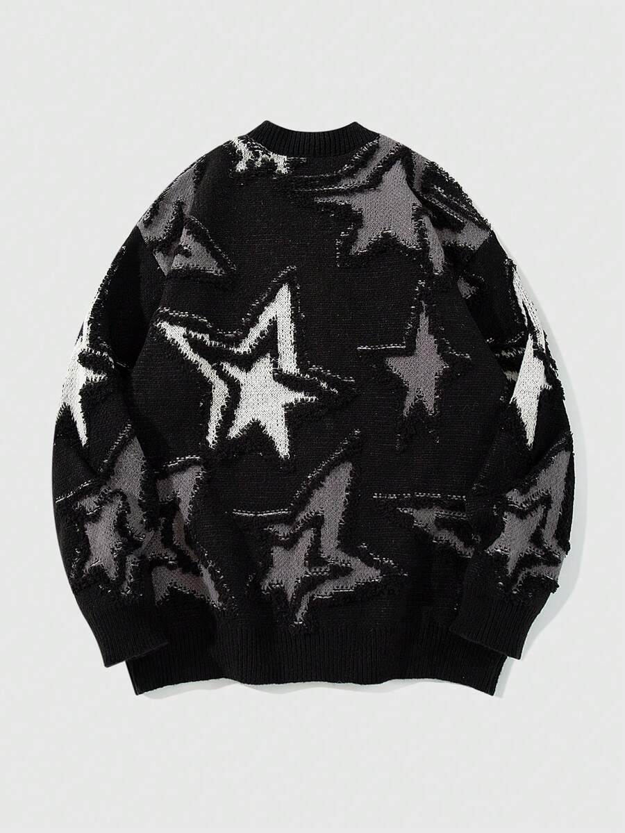 Street Life Cárdigan de punto con cuello en V y botones con estampado de estrella de cinco puntas de moda para hombre