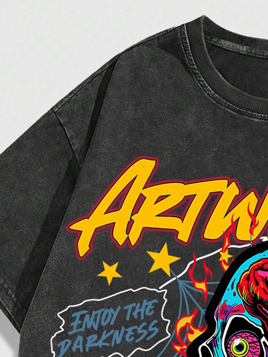 Street Life Camiseta de manga corta con estampado de graffiti vintage, lavado químico y copos de nieve para hombre, ropa urbana, verano, escuela