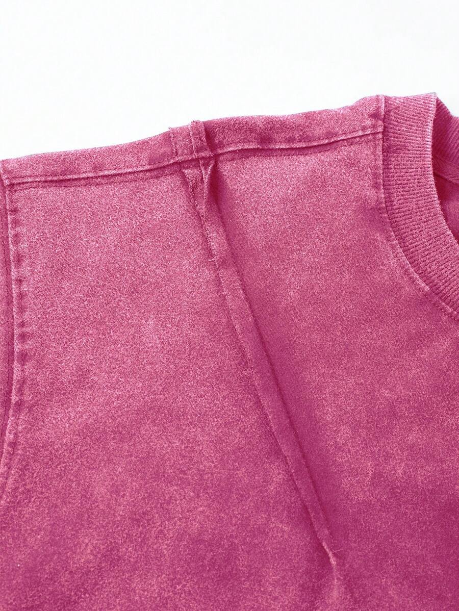 Street Life Camiseta de manga corta de estilo suelto y corto con bordado lavado vintage para hombre