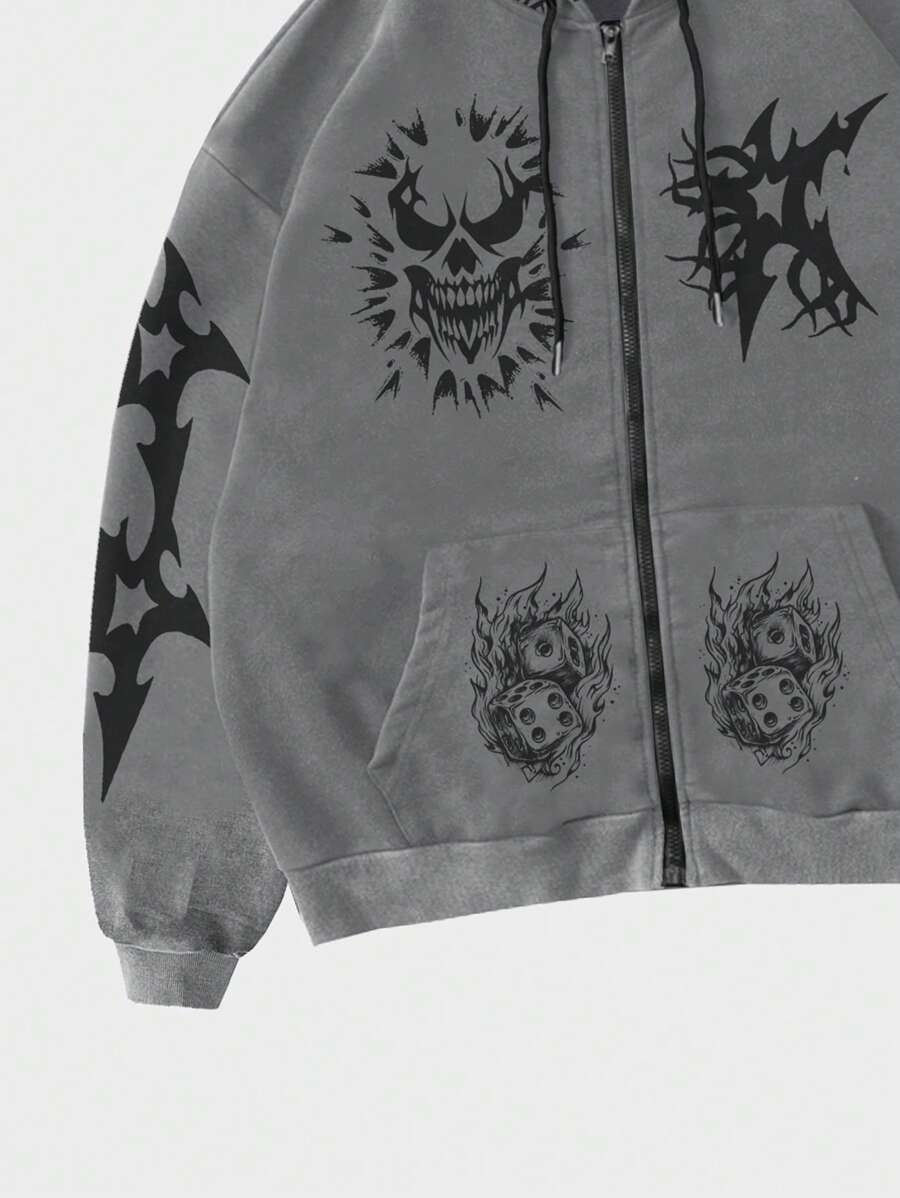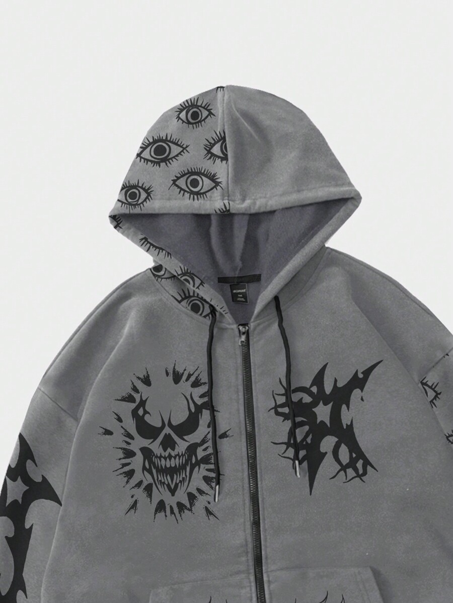 Street Life Sudadera con capucha suelta y lavada con estampado de ojo para hombre