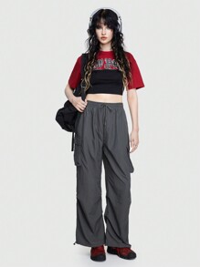 Street Life Pantalones Largos, Sueltos Y Rectos De Estilo Deportivo Al Aire Libre Con Tobillos Ajustables De Paracaídas