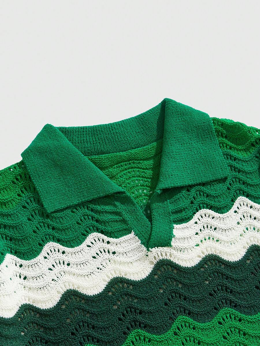 Street Life Camisa de punto holgada a rayas para hombre, top de manga corta de punto, polo de punto casual para vacaciones