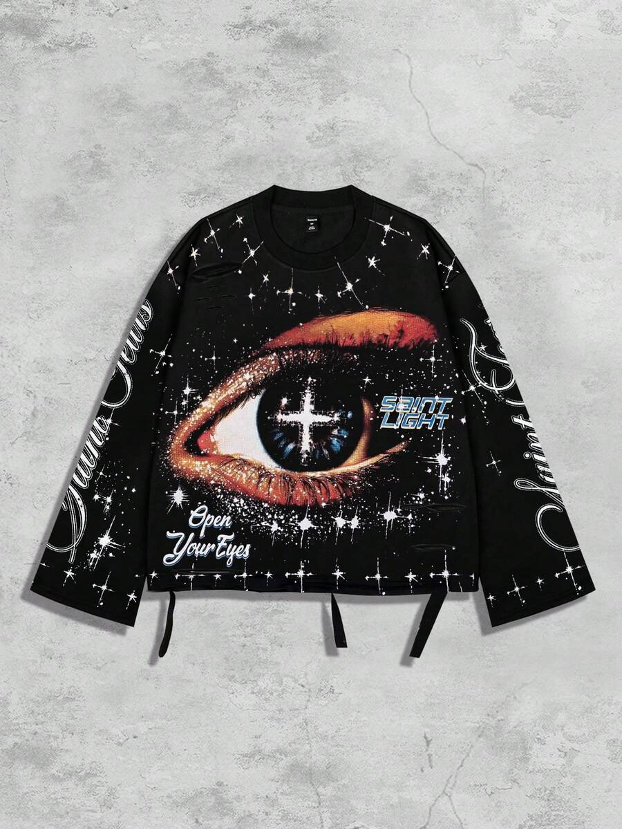 Street Life Camiseta de manga larga con cuello redondo para hombre, estilo vintage de calle con gráfico desgastado de Saint, para otoño