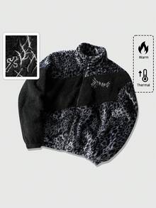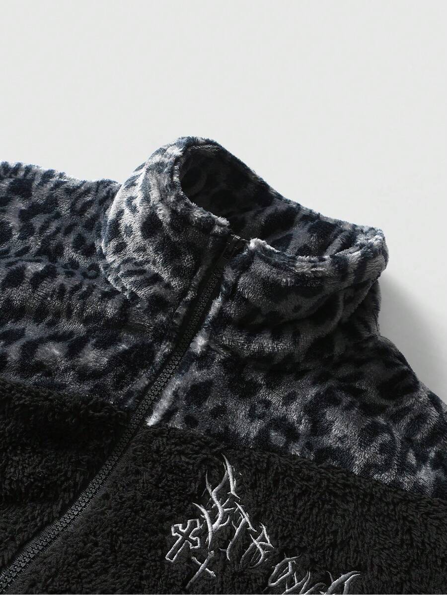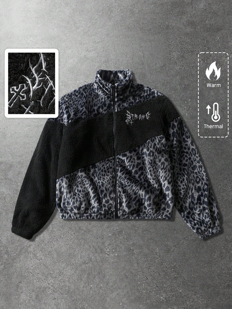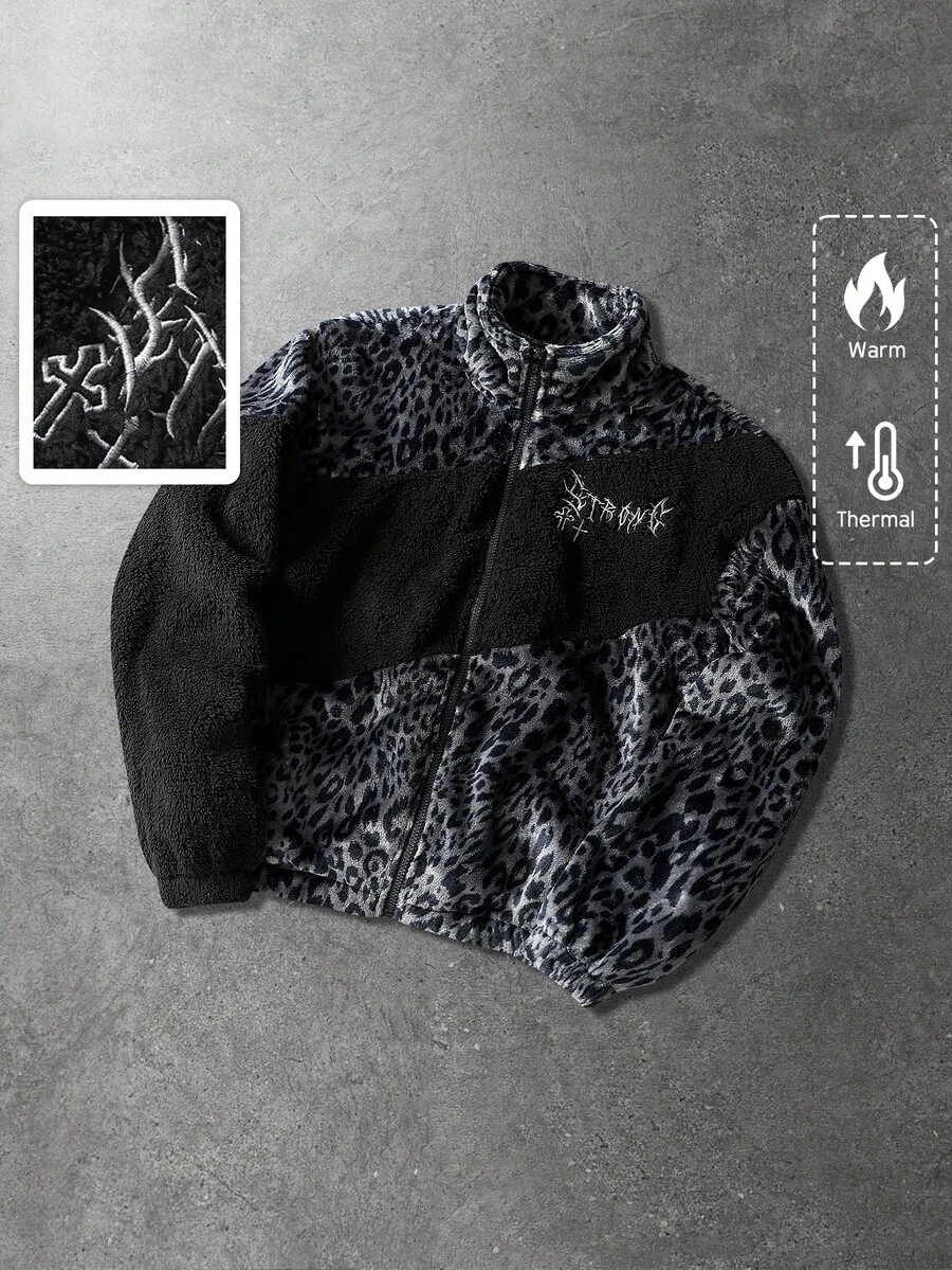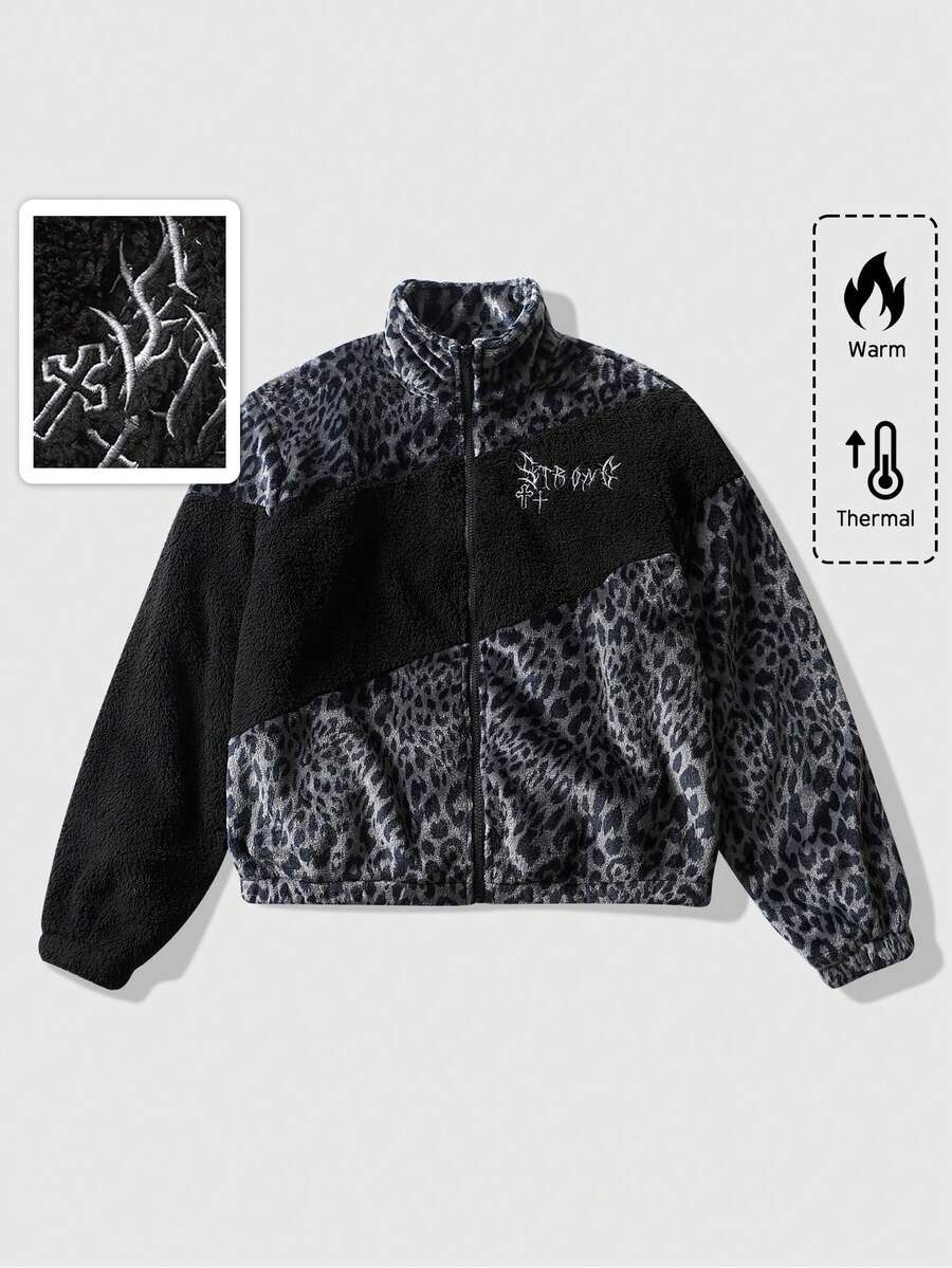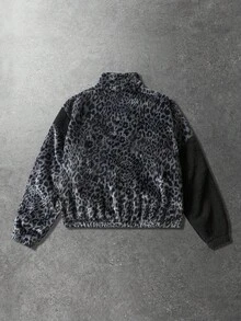 Street Life Chaqueta acolchada con estampado de leopardo y texto en inglés, unisex, para otoño/invierno