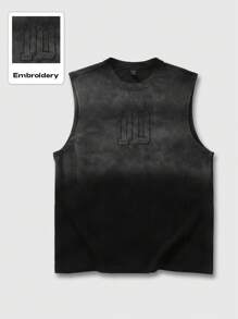 Street Life Top sin mangas unisex con estampado americano patchwork, bordado numérico y degradado efecto teñido