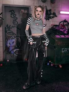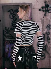 Grunge Punk Camiseta crop con estampado de rayas y estrella