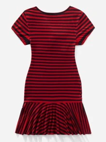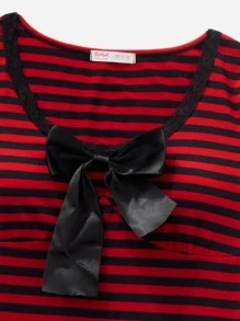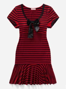 Vestido de rayas con lazo delantero bajo con fruncido