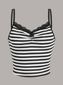 Top de tirantes de rayas con encaje en contraste