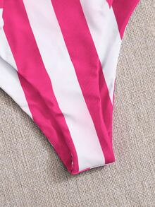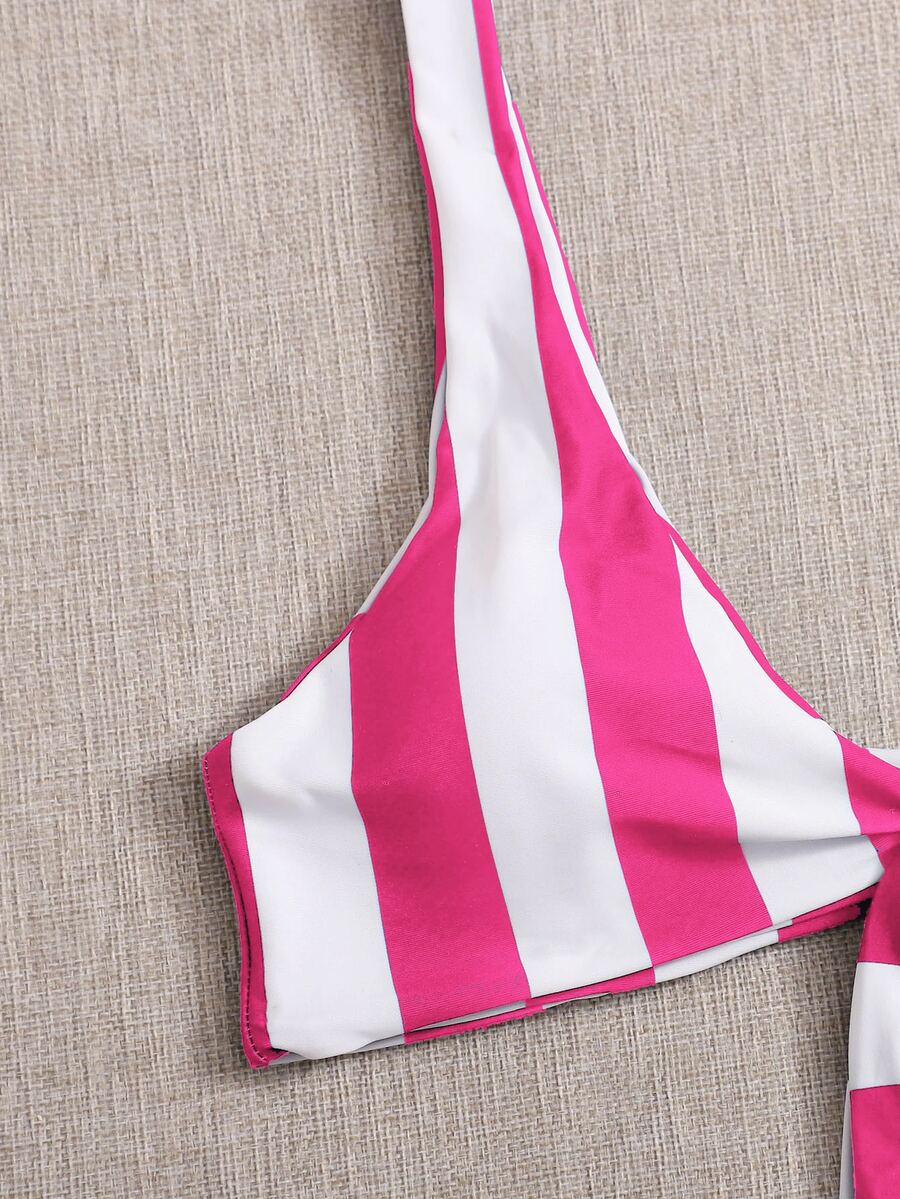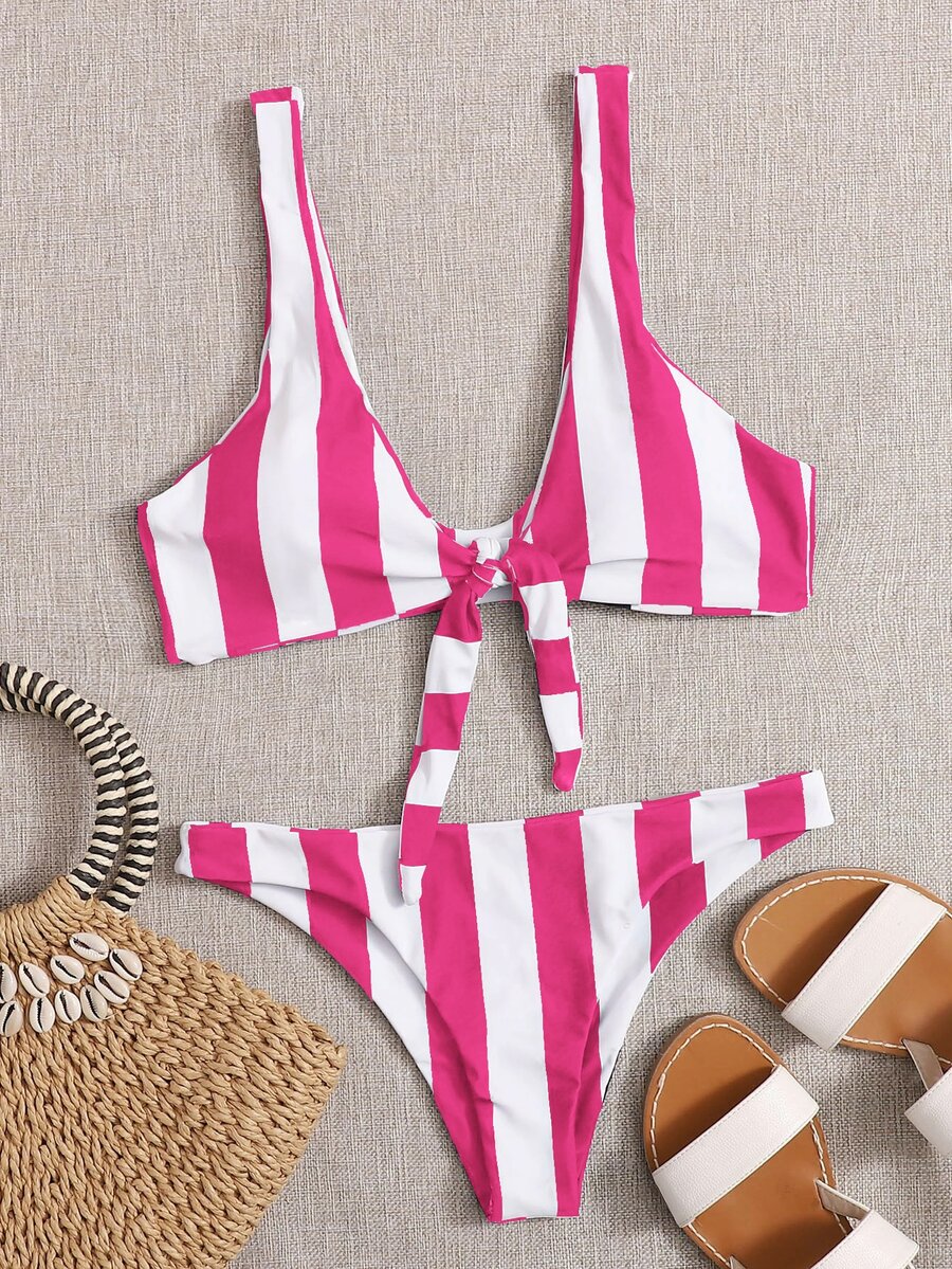 Conjunto de bikini rayado con nudo en el frente para playa de verano