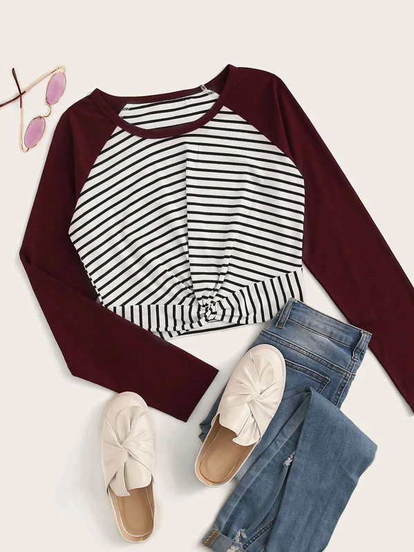 Camiseta béisbol delantero girante de rayas