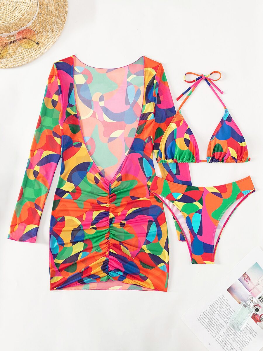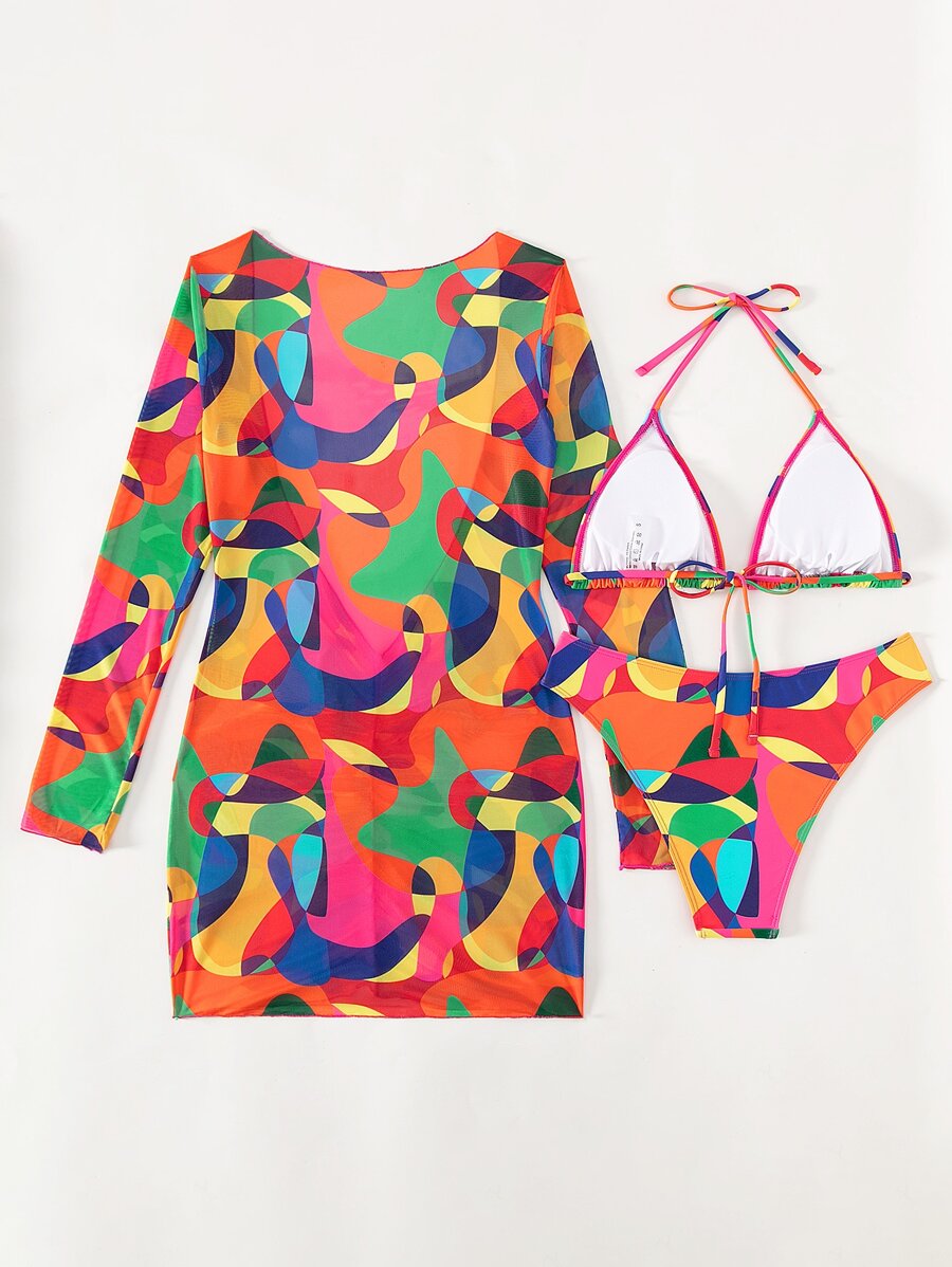 Conjunto de bikini estampado integral de playa de verano con cubierta