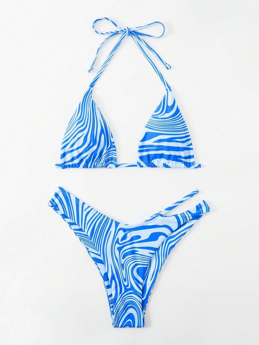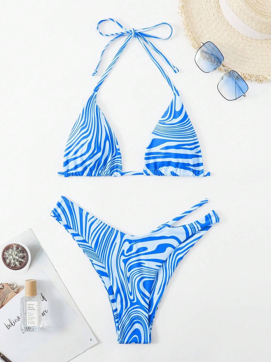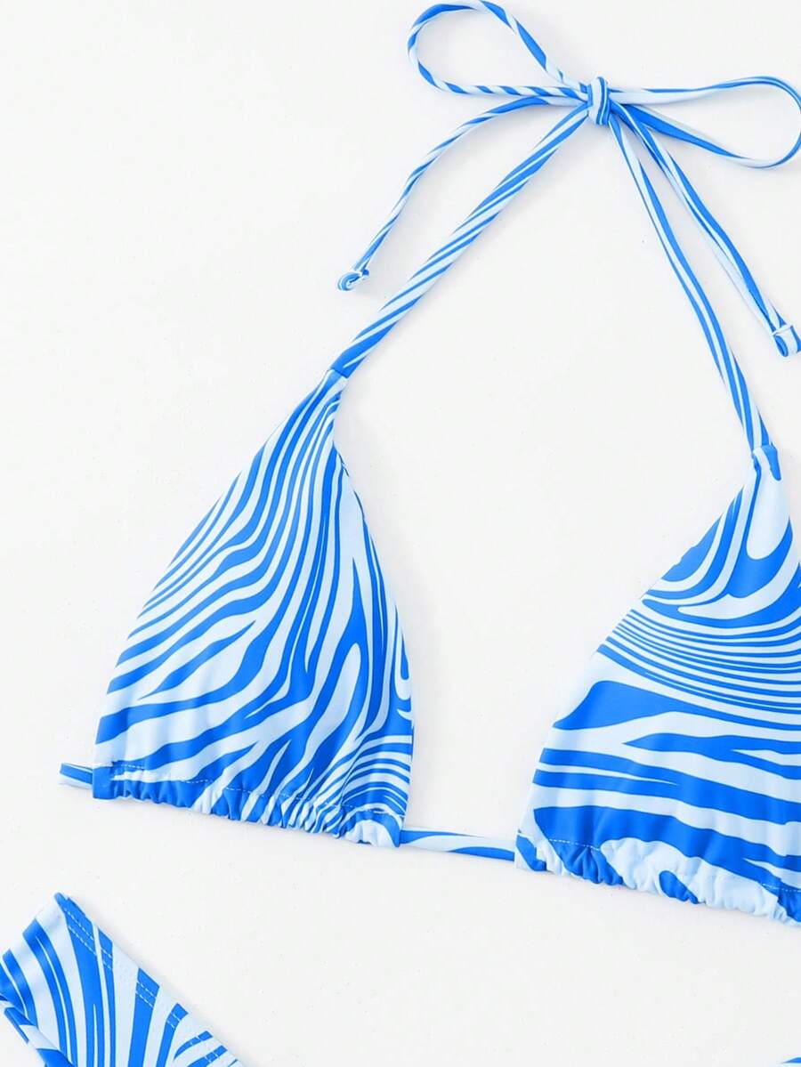 Bikini trianguluar de verano con halter y tejido fluído para playa