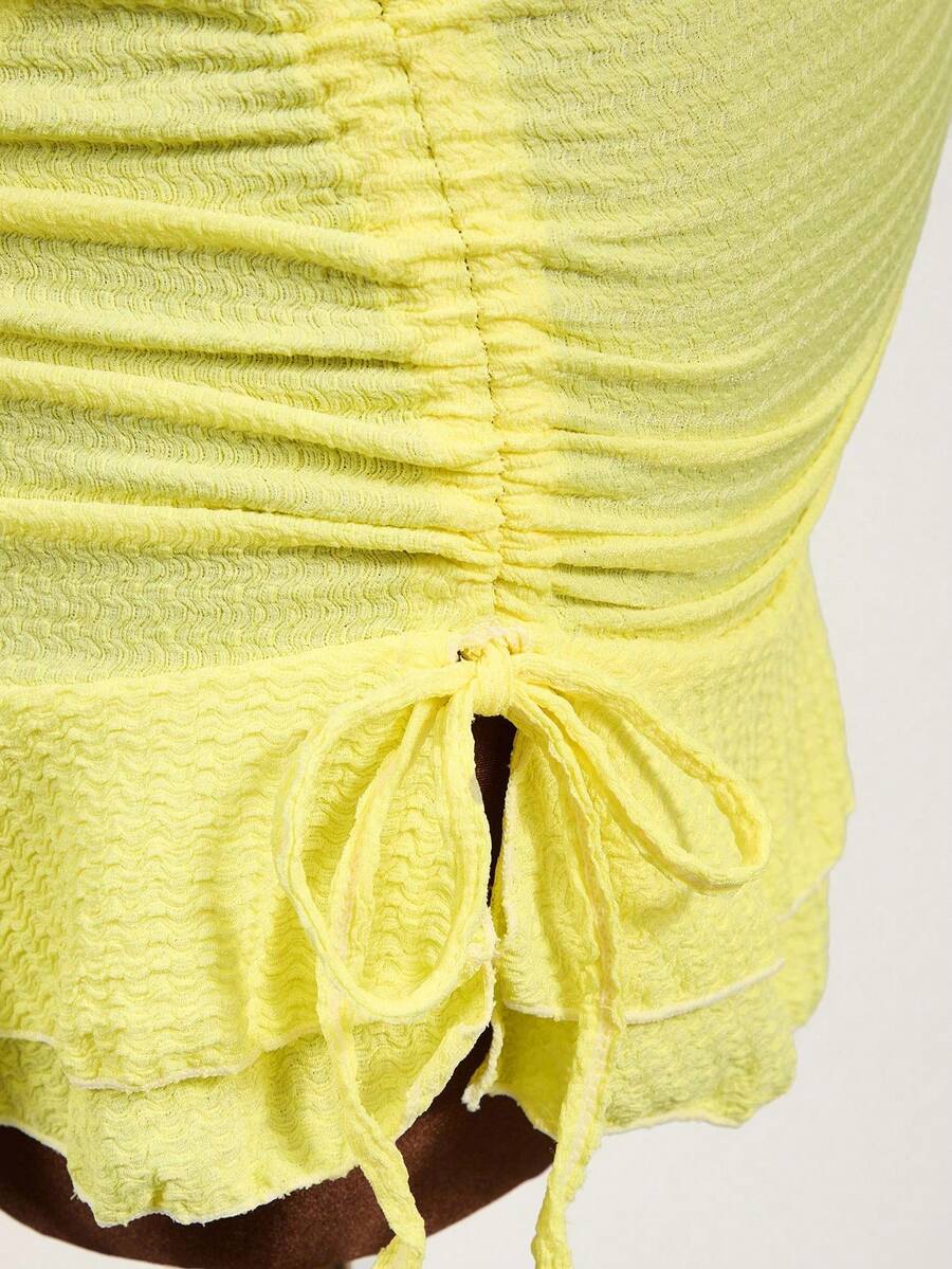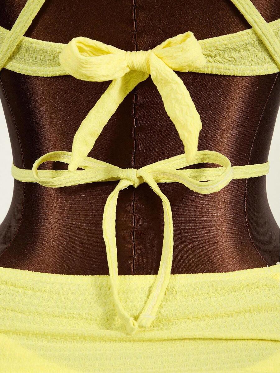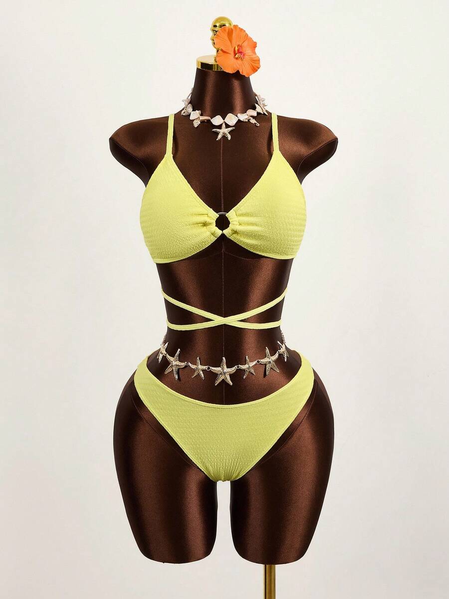Conjunto de bikini de 3 piezas para verano y playa: bikini de color sólido con detalle de argolla, sujetador cruzado y falda de playa con cordón y fruncido