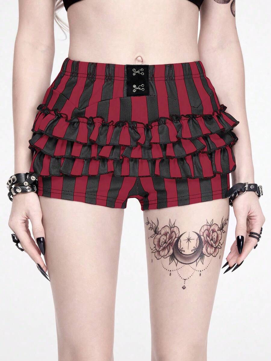 Goth Shorts de falda de pastel a rayas negras y blancas de estilo gótico de verano para mujeres