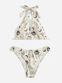 Bikini Halter Gráfico Sol y Luna