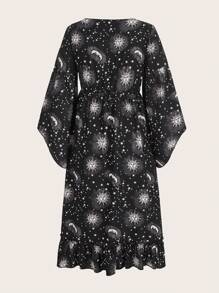 Hippie Vestido con estampado de sol y luna con cordón delantero
