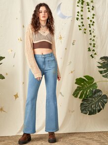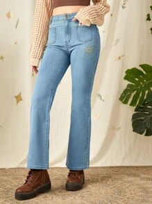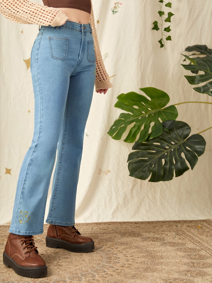 Jeans de pierna amplia sol & con bordado de luna