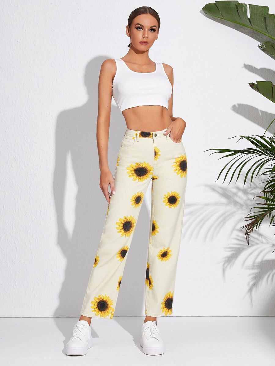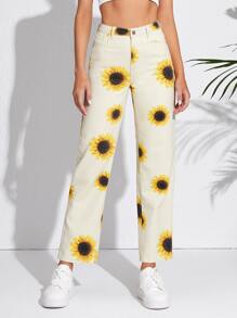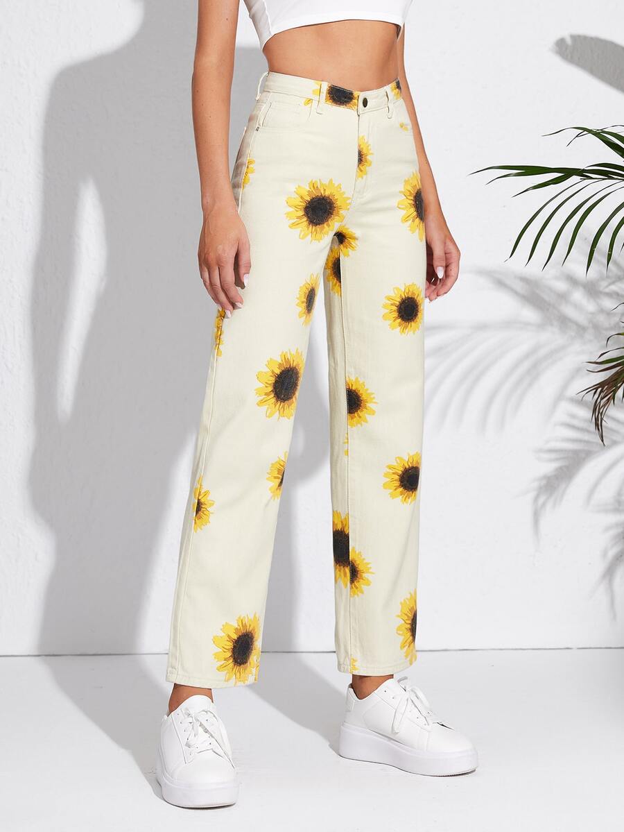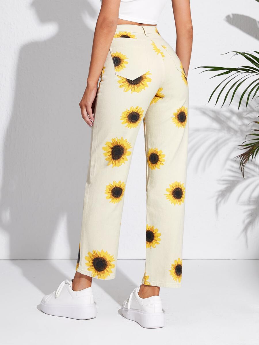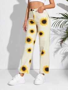 Jeans de pierna recta con estampado de girasol