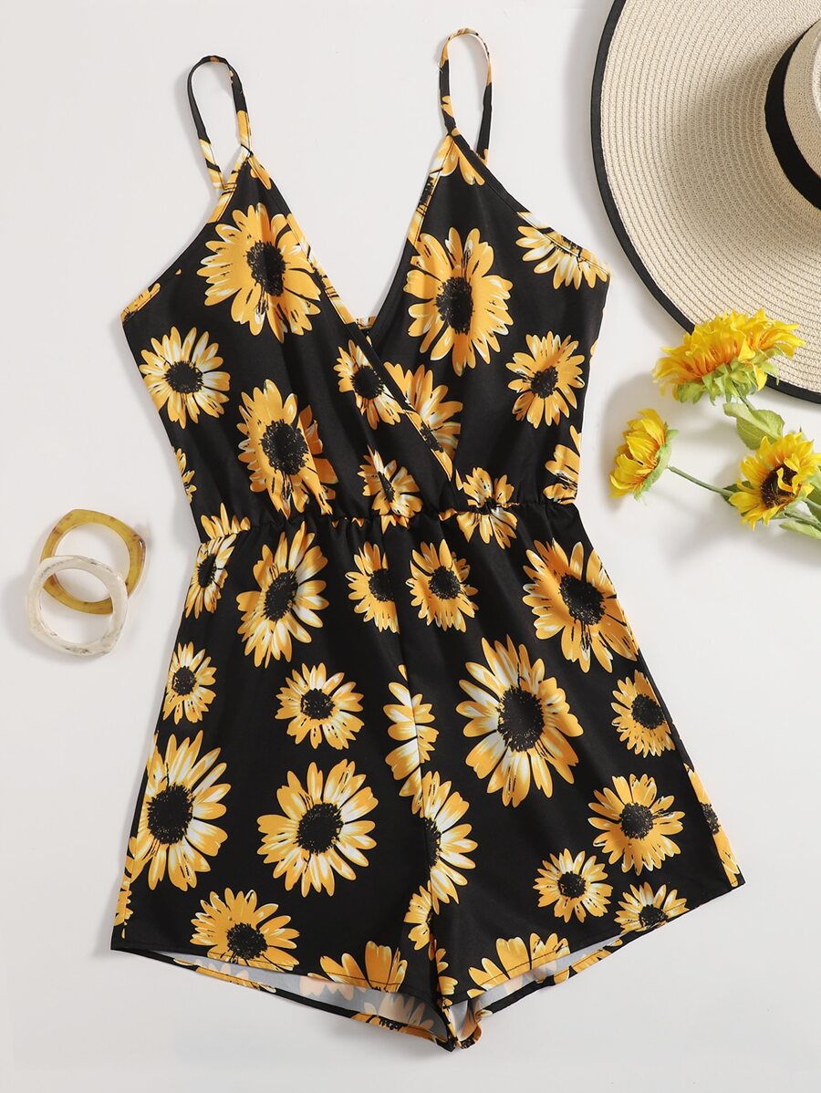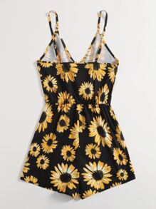 Mono de tirantes de cuello cruzado con estampado de girasol