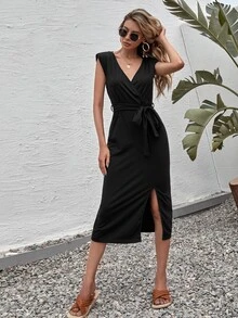Vestido ajustado con cinturón de muslo con abertura de cuello cruzado