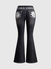Goth Pantalones acampanados de mezclilla elástica con estampado floral gótico para mujer