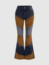 Jeans acampanados de mujer vintage con parches de gamuza estilo hippie y vaquero