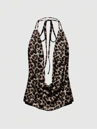 Grunge Punk Camiseta sin espalda con escote pronunciado y lazo en estampado de leopardo sexy para mujeres