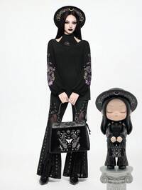 Goth Conjunto de mujer de terciopelo con bordado de corazón gótico y floral