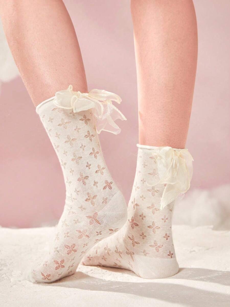 Sweetness Mujer 1 par Calcetines de tripulación flor con abertura con diseño de lazo casual para vida diaria