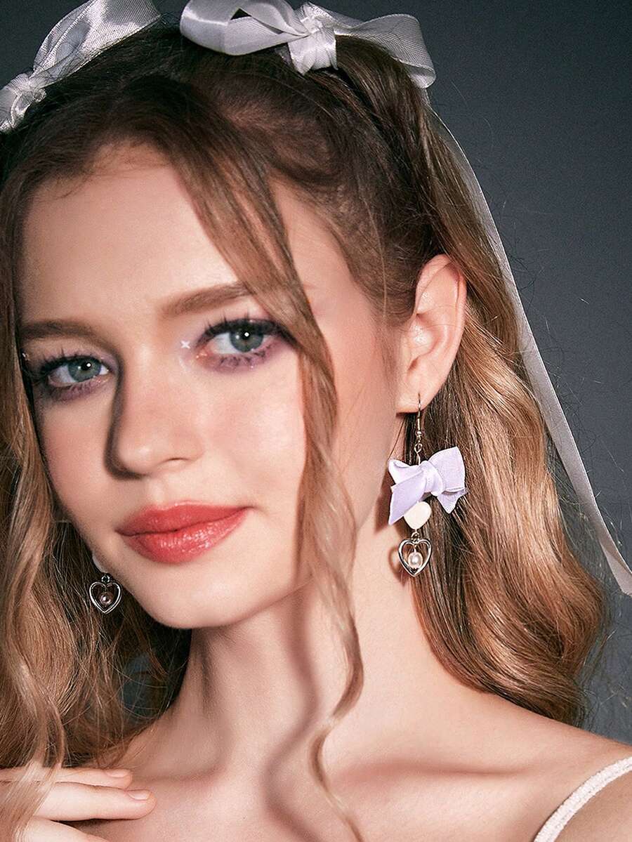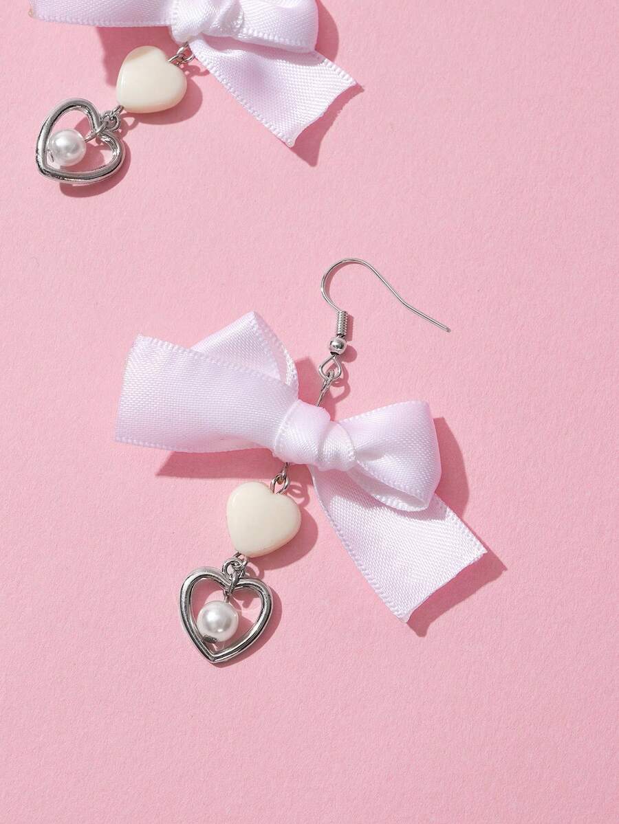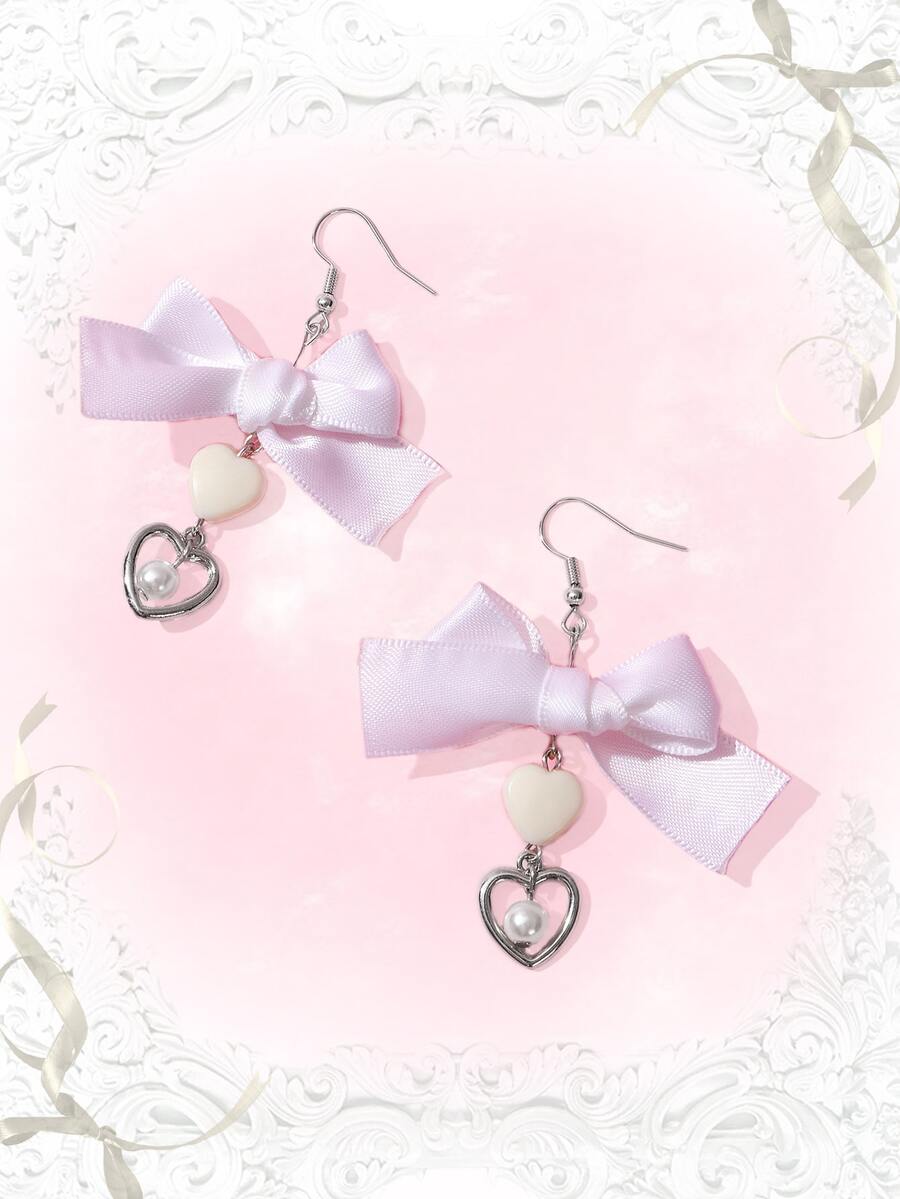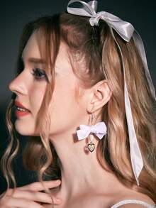 Sweetness Pendientes largos lazo & con corazón